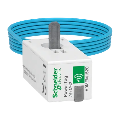 Este PowerTag Energy M63 1F+Fio é um sensor de energia de comunicação sem fio.É dedicado a dispositivos Acti9 e Multi9 1P Monoconnect com classificação menor ou igual a 63A. O fio neutro azul deve ser conectado a um bloco terminal neutro.Ele deve estar associado a um concentrador ou gateway para fornecer monitoramento e diagnóstico de circuitos até o nível de carga.Ele foi projetado especificamente para aplicativos de Gerenciamento de Energia, Monitoramento de Carga e Disponibilidade de Energia.Ele incorpora medições precisas em tempo real de energia ativa, potência ativa, corrente, tensão e fator de potência.Em caso de falta de energia, envia um alarme de perda de tensão e o valor de corrente por fase antes de ser desenergizado.PowerTag Energy 63A está em conformidade com a norma IEC 61557-12. É um PMD-I/DD/K55/1. A categoria Desempenho é Classe 1.A corrente máxima Imax é 63A. A corrente da Base Ib é 10A.A corrente de saturação é 130A. A corrente de partida Ist é 40mA.A tensão nominal Un é fase-neutro 200VAC a 240VAC +/- 20%.O consumo máximo é inferior ou igual a 1VA.Pode ser montado na parte superior ou inferior do dispositivo de proteção.A cor do produto é branca (RAL9003). O peso é 16,4g.O grau de proteção é IP20 e IK05,A temperatura de operação está entre -25°C a +60°C. A temperatura de armazenamento está entre -40°C a +85°C.