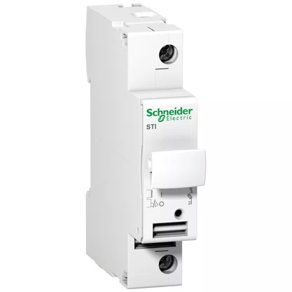 O porta-fusível Acti9 STI da Schneider Electric oferece proteção contra sobrecarga e curto-circuito. Este produto possui 1 pólo e opera na tensão de 500V AC com fusíveis tipo AM e GG de 10,3 x 38 mm. É usado para aplicações terciárias e industriais que exigem um alto poder de interrupção. Este porta-fusíveis desempenha a função de isolamento e não deve ser usado como interruptor. Além disso, possui proteção IP20 e pode ser montado em trilho DIN. Também pode ser equipado com cartucho tipo aM ou gG (gL - gI), com ou sem indicador de queima opcional. Este dispositivo está em conformidade com as normas IEC 60947-3 e IEC 60269-2. Os porta-fusíveis Acti9 STI levam o selo Environmental Data Program, que categoriza e mede os atributos ambientais e a pegada ecológica/de carbono do produto com objetivo de proporcionar dados transparentes e robustos que cobrem todo o ciclo de vida do produto.