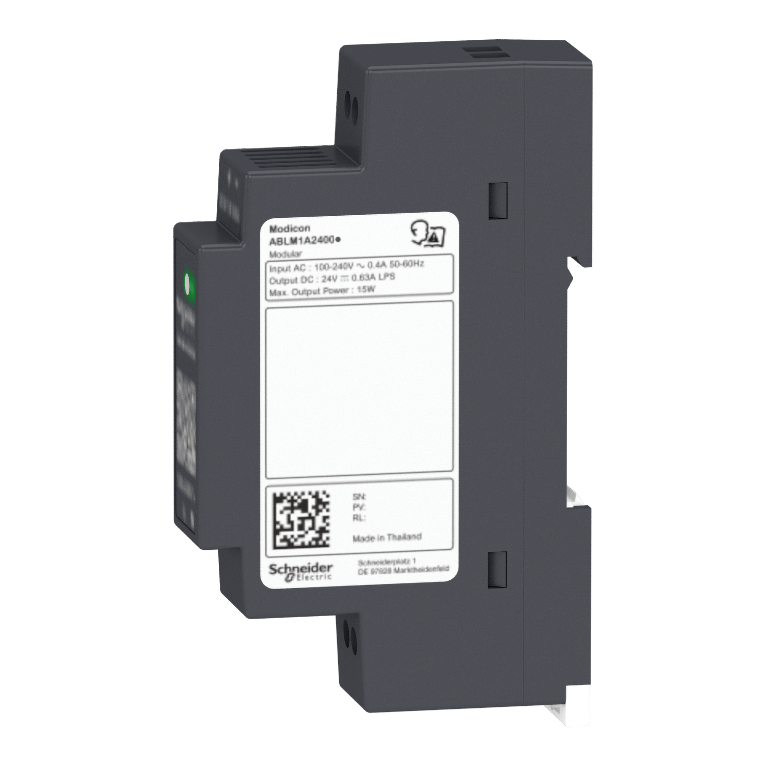 A ABLM1A24004 é uma fonte de alimentação chaveada que garante qualidade no fornecimento de tensão contínua para equipamentos de automação!,Possui proteção contra sobrecarga, curto circuito, sobretensão e superaquecimento, além de poder ser conectada diretamente a quadros centrais de distribuição.Essa variação tem corrente de 0,4 A, tensão de alimentação monofásica de 100-240 Vca e tensão de saída de 24Vcc.