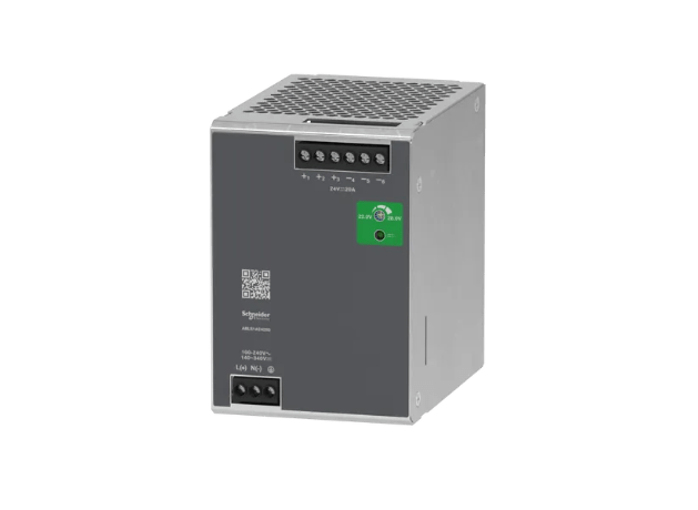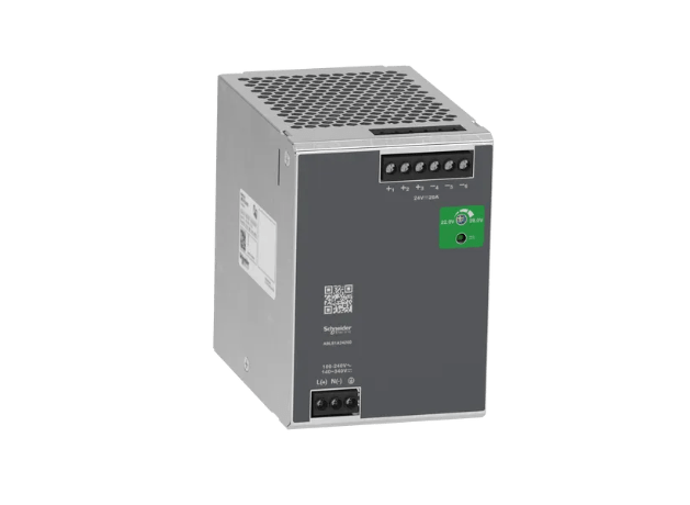 Essa fonte de alimentação do modo de chave regulada (SMPS) fornece a tensão de corrente direta. Possui uma entrada nominal de 100V a 240V CA e 140 V a 340 V DC, uma corrente de saída nominal de 20A a 24V DC e uma potência nominal de 480W. É ideal para fornecer tensão CC necessária para equipamentos de automação projetados para aplicações em aplicações industriais, comerciais e residenciais, como transmissão, embalagem, controle, alimentos e bebidas, mineração, petróleo e gás e água. Ele instala no trilho ômega ou fixando por parafuso.Sua largura é de 85,5 mm, sua altura é de 123,6 mm, sua profundidade é de 128,5 mm. Ele garante uma proteção contra sobrecarga e curto-circuito com reinicialização automática após a corrigir a fonte de sobrecarga/curto-circuito. Ele pesa 1,250 kg. A faixa ACTI9 IC60 de disjuntores em miniatura é recomendada para sua proteção.O tipo de proteção é 13A, C curva ou 16a, curva B. Graças à sua habitação de livros, ele pode ser instalado em gabinetes ou painéis industriais, recorte o trilho Omega (DIN). Traz energia para seus sistemas automatizados. Projetados para máquinas e aplicações simples, as fontes de alimentação modulares são apreciadas principalmente por sua extrema compactação.