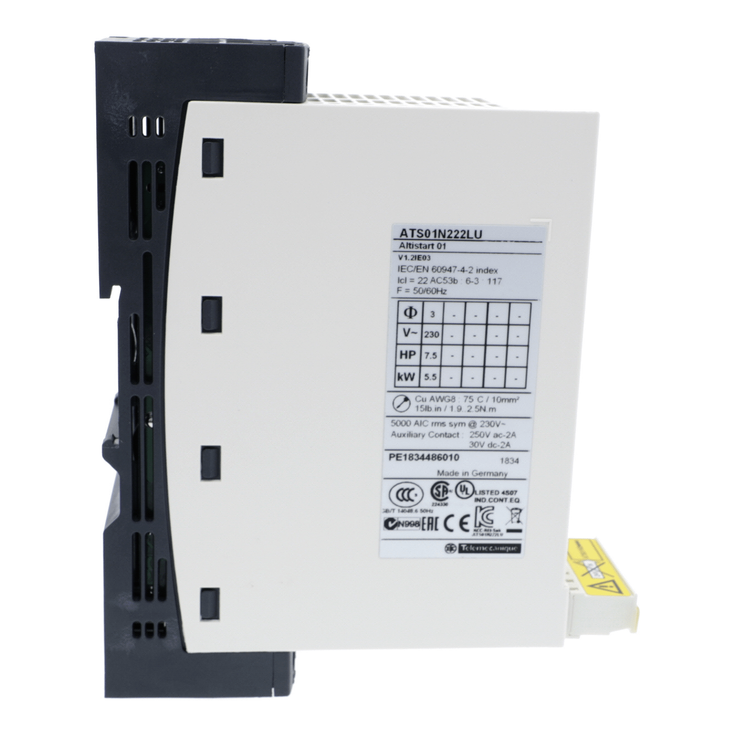 As Soft Starters ATS01 permitem uma partida e parada suave, evitando tensões mecânicas e prolongando a vida útil da máquina.As mesmas foram projetadas para atender máquinas simples, como transportadores, bombas, ventiladores, compressores, portas e portões automáticos.O modelo ATS01N232QN, pode alimentar motores com corrente de até 32A, possui alimentação trifásica de 380...415Vac, funciona com potência de até 15kW/20CV.