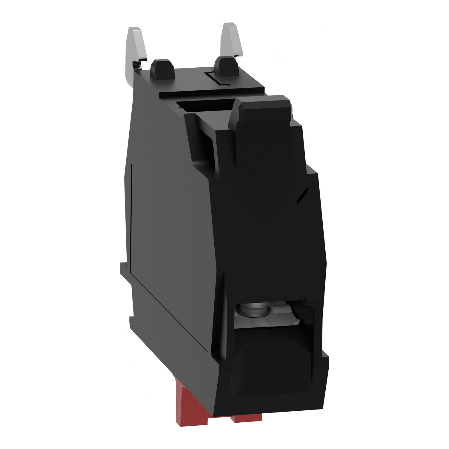 O ZENL1121 é um bloco de contato único da linha Harmony XAL.Usa terminais de fixação por parafuso e possui 1 contato normalmente fechado.É compatível com unidades de controle e sinalização Harmony XB5 e estações de controle XAPS.Este bloco de contato permite a substituição e configuração rápida e fácil de seus botões e chaves seletoras.Ele é facilmente instalado e substituído em unidades completas de botão de pressão XB5, chaves seletoras e estação de controle XAPS e se conecta a circuitos de controle com conexões simples de braçadeira de parafuso.Protege os operadores do contato inesperado com circuitos energizados graças ao seu índice de proteção IP20.O design modular simples facilita a manutenção pós-instalação, modificação e adaptação de máquinas por não especialistas.A alta resistência de 1 milhão de ciclos permite menos manutenção e danos em sua instalação.Os terminais de conexão com braçadeira de parafuso resistentes à vibração garantem alta resistência à vibração, tornando o produto adequado para instalação em máquinas de alto impacto.