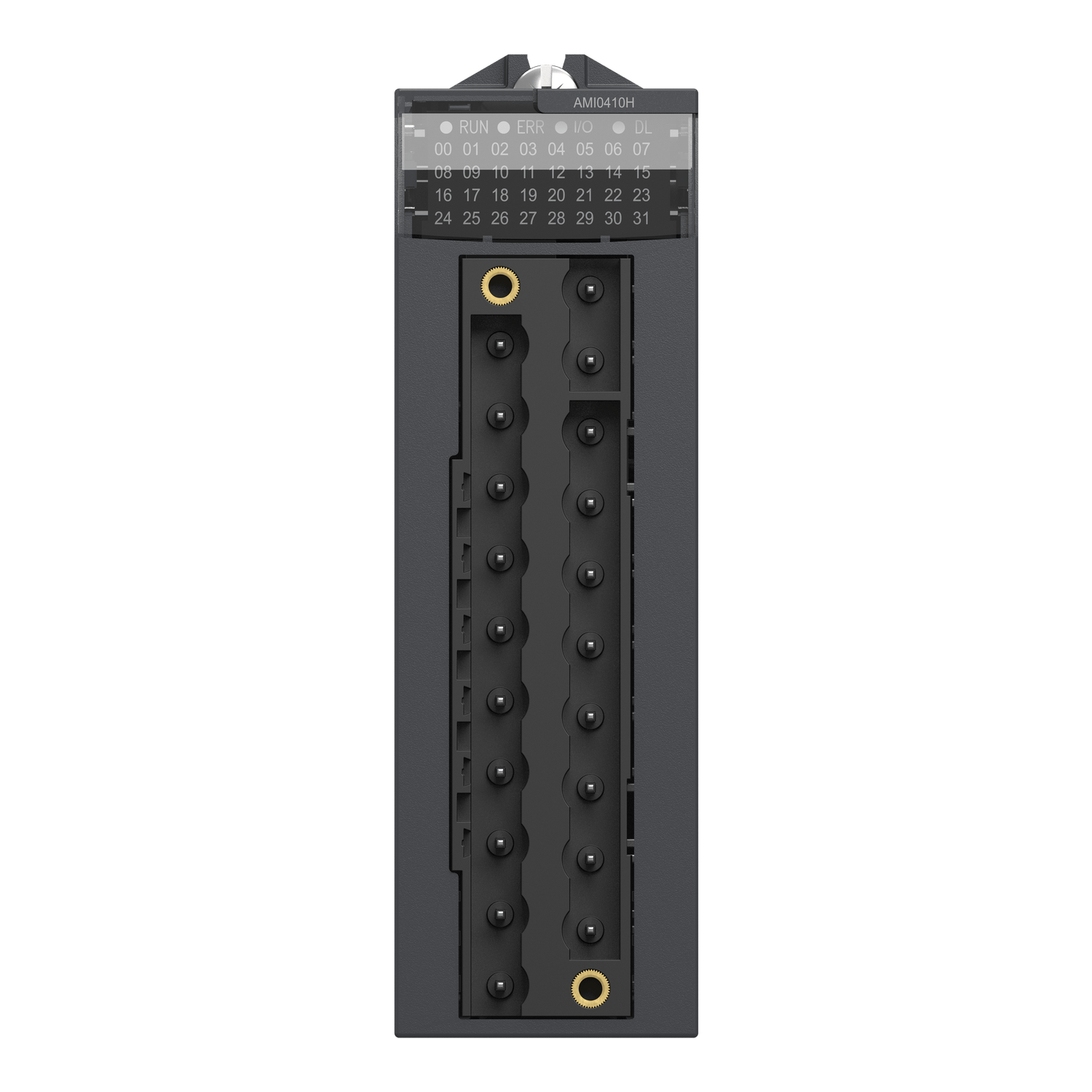 Este módulo de entrada analógica de segurança faz parte da linha Modicon X80, oferecendo uma,solução comum de E/S e comunicação para os CLPs Modicon M340 e M580. Com 4 canais de entrada,isolados, é compatível CLPs de segurança com gaiolas de 20 vias, fontes de alimentação e racks.Possui proteção contra picos de corrente. Além disso, proporciona uma padronização de montagem e,implantação nas arquiteturas de automação da linha Modicon, reduzindo o estoque de peças de,reposição, manutenção e custos de treinamento. Pode fazer parte da arquitetura totalmente aberta do,EcoStruxure Plant, sendo flexível, confiável, sustentável, segura e protegida, garantindo,eficiência e praticidade em operações de automação. Atende às necessidades de aplicações em,Transporte, Água e Águas Residuais, Bens de Consumo Embalados, Mineração, Minerais, Metais, Geração,de Energia, Energias e Produtos Químicos e Data centers.