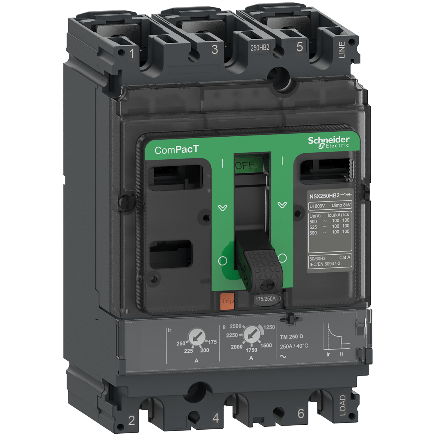 O disjuntor C25H3TM160 da Schneider Electric, modelo NSX250H TM160D, é um dispositivo de proteção tripolar projetado para aplicações elétricas industriais. Este disjuntor possui uma corrente nominal de 160A e uma capacidade de corte de, com a unidade de disparo sendo a TM160D. Sua estrutura tripolar o torna ideal para a proteção de circuitos trifásicos, garantindo a interrupção segura de correntes em caso de sobrecarga ou curto-circuito. A Schneider Electric, renomada em soluções de gestão de energia, oferece com este produto uma confiabilidade e performance esperadas para instalações que demandam robustez e segurança. Este disjuntor é um componente essencial para a integridade de sistemas elétricos em ambientes que requerem alta performance de proteção.