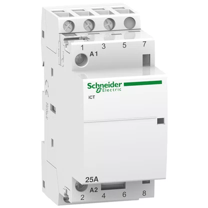 O contator modular iCT é referência na distribuição de terminais de baixa tensão. oferecendo um controle completo de supervisão de circuitos elétricos.. O A9C20633 possui 3 polos. capacidade de 25A. 3 contatos NA e opera na tensão de 220/240VCA.. Este produto pode ser usado em equipamentos de controle e circuitos de potência para circuitos finais. como iluminação ou motores padrão: ventilação. bomba de calor. sistema de irrigação. aquecimento. fornos. etc.