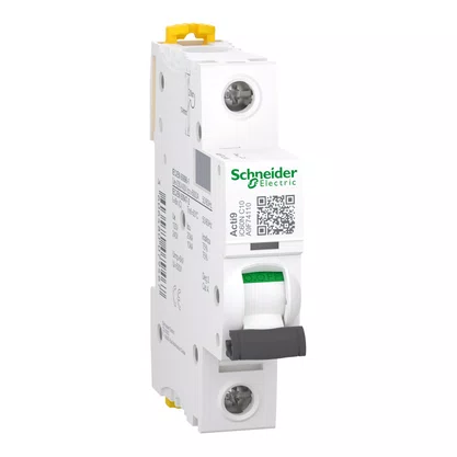 Os disjuntores Acti9 IC60 da Schneider Eletric são projetados para proteger o circuito elétrico contra sobrecargas e curtos-circuitos.. O A9F74110 possui 1 polo. corrente nominal de 10A. curva de atuação tipo C e capacidade de interrupção de 10kA em 220/240VCA(60947-2).. Este produto possui uma sinalização aparente de falha (Visitrip) e oferece uma vida útil maior ao produto graças a sua tecnologia única de fechamento rápido.