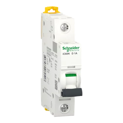 Os disjuntores Acti9 IC60 da Schneider Eletric são projetados para proteger o circuito elétrico contra sobrecargas e curtos-circuitos.. O A9F75101 possui 1 polo. corrente nominal de 1A. curva de atuação tipo D e capacidade de interrupção de 50kA em 220/240VCA(60947-2).. Este produto possui uma sinalização aparente de falha (Visitrip) e oferece uma vida útil maior ao produto graças a sua tecnologia única de fechamento rápido.