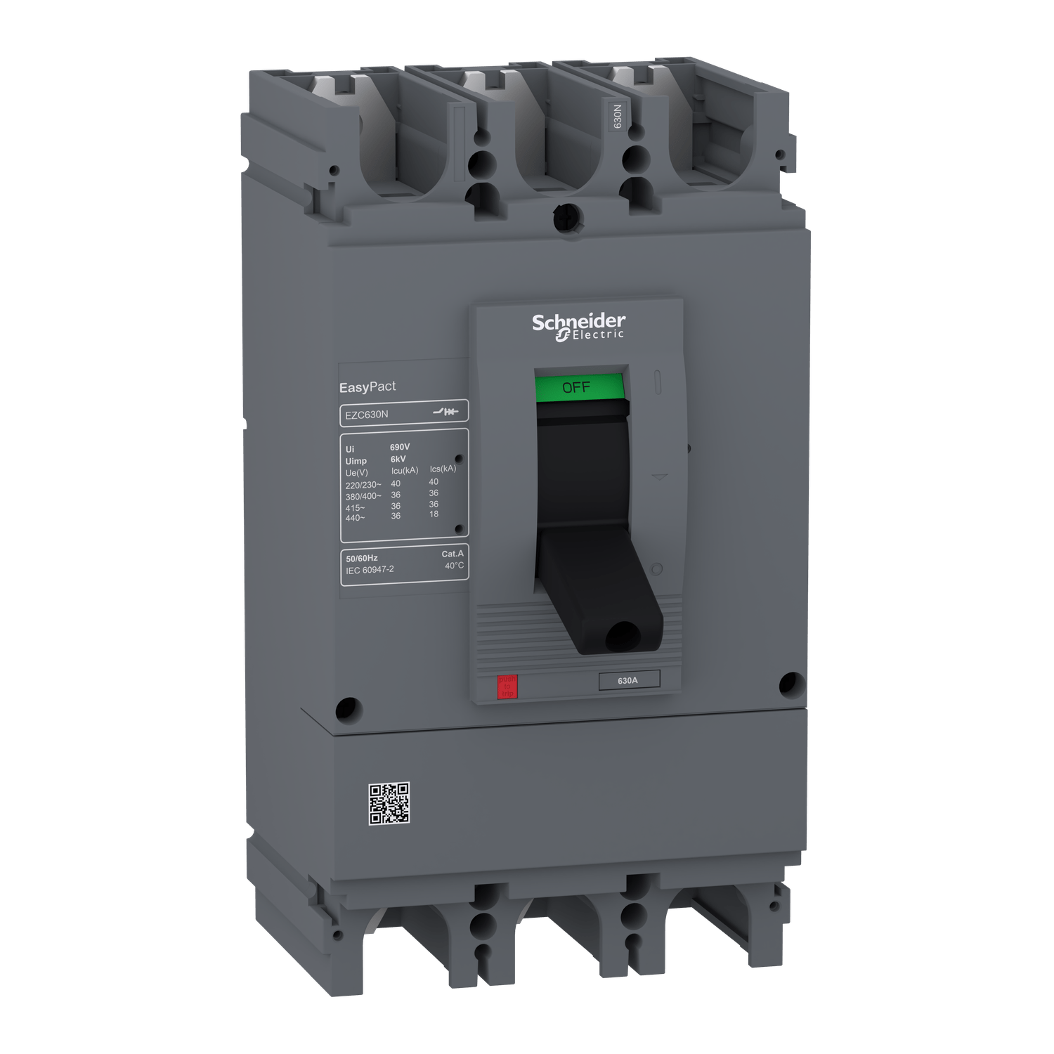O EasyPact EZC630N é um disjuntor fixo de 3 polos projetado para a proteção de instalações elétricas de baixa tensão.É usado para aplicações padrão em indústrias e edifícios, oferecendo bom desempenho a preços competitivos,A capacidade de interrupção (Icu) é de 36 kA rms a 415 VCA 50/60 Hz. A tensão operacional é de 440 VCA 50/60 Hz ou 250 VCC.A classificação da unidade de disparo termomagnético é 600A.A unidade de disparo fornece proteção contra sobrecarga fixa e proteção instantânea.Esta versão de 3 polos (140 mm x 255 mm x 110 mm) vem com uma variedade de funções e acessórios opcionais.O Easypact EZC630N está em conformidade com normas internacionais (IEC 60947, UL 508) e certificações marítimas.
