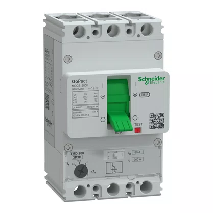 O GoPact de Schneider Electric é uma linha de disjuntores de caixa moldada especialmente projetada e dedicada a edifícios de pequeno e médio porte, fábricas, OEMs e outras aplicações exigentes. É uma solução simples com qualidade robusta e preço acessível. Projetada para atender aos requisitos das instalações de sistemas elétricos atuais em constante evolução. Este dispositivo é um disjuntor termomagnético de 3 polos e corrente nominal de 200A. O GoPact MCCB oferece uma boa relação preço-desempenho para aplicações básicas e garantiza uma proteção elétrica confiável para suas aplicações. Sua capacidade de ruptura (Icu) é 36kA rms a 415VAC 50/60Hz. A tensão de operação é 415V AC 50/60Hz. Este disjuntor incorpora uma unidade de disparo termomagnético (TMD) de classificação 80A (In). Esta unidade oferece uma proteção térmica ajustável Ir (contra sobrecargas) com uma faixa de ajuste de 0,7xIn a 1xIn (56A-80A). Além disso, oferece uma proteção magnética fixa (contra curtos-circuitos) definida para 12xIn (960A). O GoPact MCCB possui uma variedade de acessórios opcionais simples de escolher e instalar. Suas dimensões são 130 mm (A.) x 75 mm (L.) x 60 mm (P.) e seu peso é de 0,9 kg. Este produto tem tem certificação IEC 60947-1 e IEC 60947-2. Além disso, GoPact MCCB se beneficia da garantia de qualidade da Schneider Electric. Os disjuntores termomagnéticos de caixa moldada GoPact leva o selo Environmental Data Program, que categoriza e mede os atributos ambientais e a pegada ecológica/de carbono do produto, com o objetivo de proporcionar dados transparentes e robustos que cobrem todo o ciclo de vida do produto.