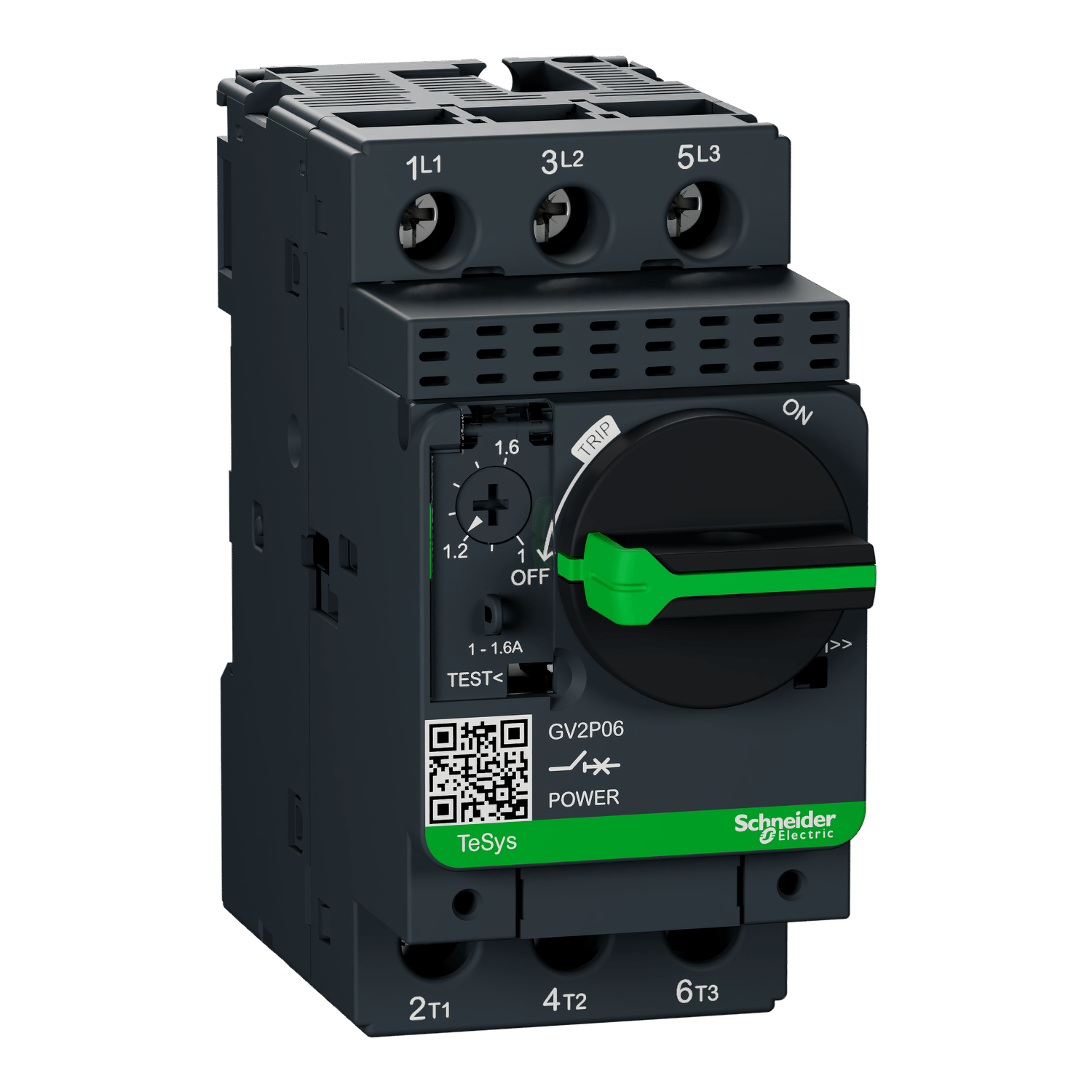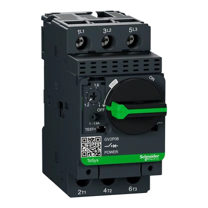 O disjuntor motor termomagnético GV2P06, da linha Tesys Deca da Schneider Electric, é uma solução robusta para proteção de motores elétricos, com capacidade de ajuste de proteção térmica na faixa de 1 a 1,6 Ampères. Este dispositivo é projetado para aplicações que demandam alta confiabilidade e precisão no controle de sobrecarga e curto-circuito, garantindo a integridade de equipamentos e processos industriais. Sua manopla rotativa proporciona uma operação intuitiva e segura para o ajuste da corrente nominal de proteção, facilitando a configuração e manutenção. O GV2P06 integra funcionalidades de proteção térmica e magnética em um único componente, otimizando espaço e complexidade em painéis elétricos.