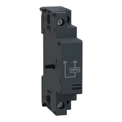 Disparo elétrico TeSys GV, liberação de derivação MX, 380-400 V CA 50 Hz / 440 V CA 60 Hz, para disjuntores motores GV2, GV3.Dispara o disjuntor quando a tensão de controle é aplicada nos limites 0,7-1,1 Uc com uma duração de impulso maior que 20ms ou um sinal mantido.Para ser montado no lado direito do disjuntor, conexão por terminais de grampo de parafuso.Certificação multipadrões (IEC, UL, CSA, CCC, EAC), compatível com Green Premium (RoHS/REACh).