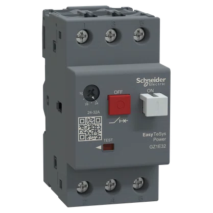 Os GZ1 E são disjuntores termomagnéticos tripolares 3D especificamente concebidos para o controle e proteção de motores em conformidade com as normas IEC 60947-2 e IEC 60947-4-1.A faixa de configuração dos disparos térmicos é de 24-32A com unidade de disparo termomagnético.Ele fornece proteção IP 41 no painél GV2 MC01 e IP 55 no painél GV2 MC02.Ele obtém confiabilidade e durabilidade padrão com durabilidade elétrica/mecânica de 0,1 milhões de ciclos.Esses disjuntores são projetados para conexão por terminais de braçadeira de parafuso.Disponível em todo o mundo, é certificado por vários padrões (IEC, UL, CSA, CCC, EAC, Marine) e compatível com Green Premium (RoHs/Reach).