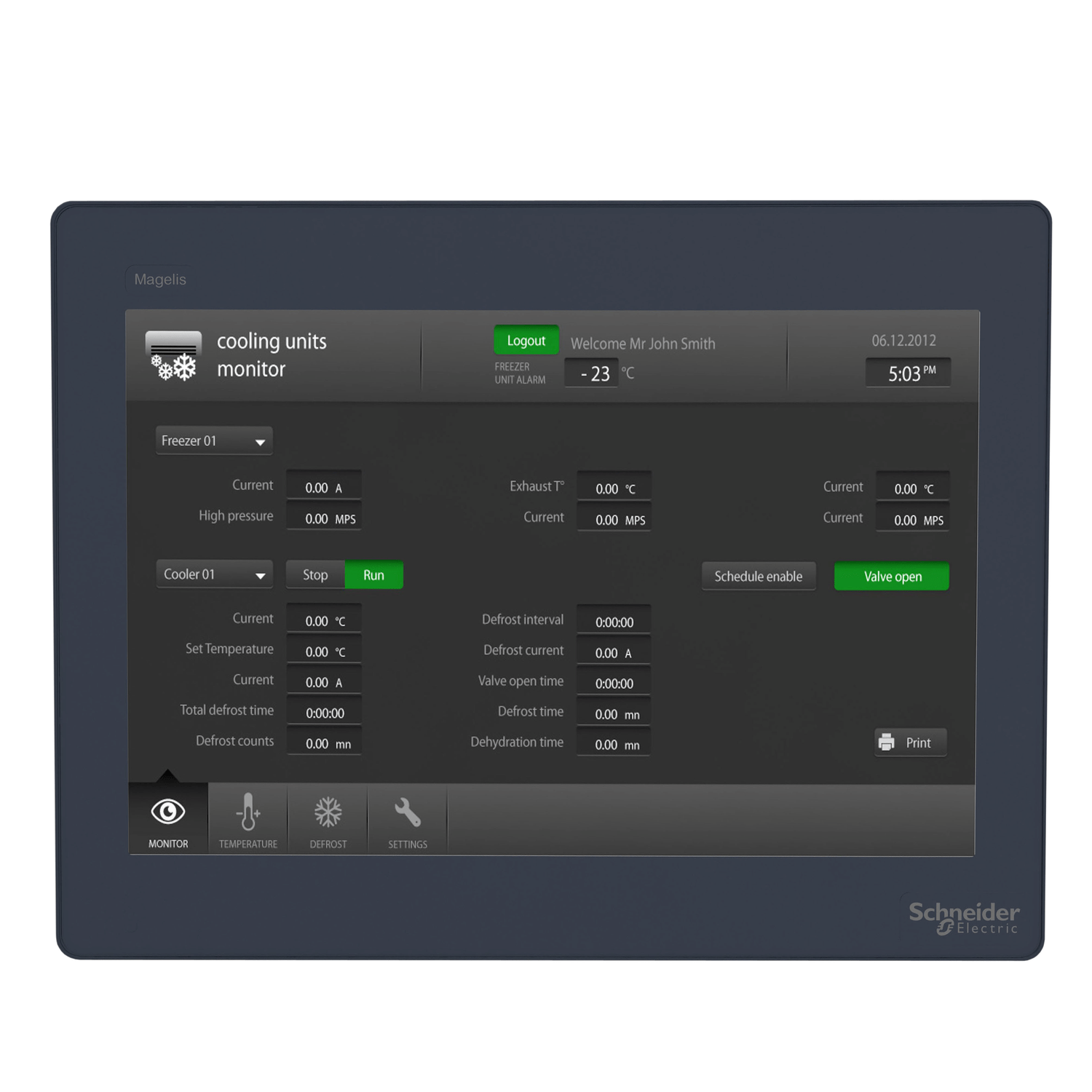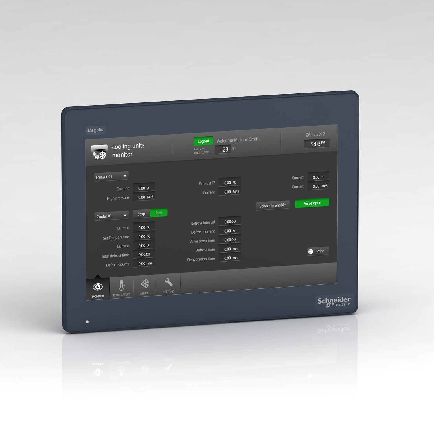 A IHM GTU é fornecida com 12V a 24V DC, possui um display LCD TFT colorido de 12" com 1280 x 800 pixels e 262K cores. A IHM é ideal para monitoramento e comunicação de alto desempenho. Monitoramento e comunicação de alto desempenho graças a uma interface semelhante a um smartphone para uso nos sistemas de automação mais exigentes, incluindo equipamentos de controle industrial, locais perigosos e aplicações marítimas. A tela exibe mensagens de texto, objetos gráficos e diagramas mímicos, controle e configuração de dados. Ele também oferece armazenamento removível, LAN dupla e interfaces de comunicação duplas. Resiste à temperatura permanente de 60°C, o que o torna ideal para instalação em áreas onde a ventilação do gabinete não é possível ou arriscada.