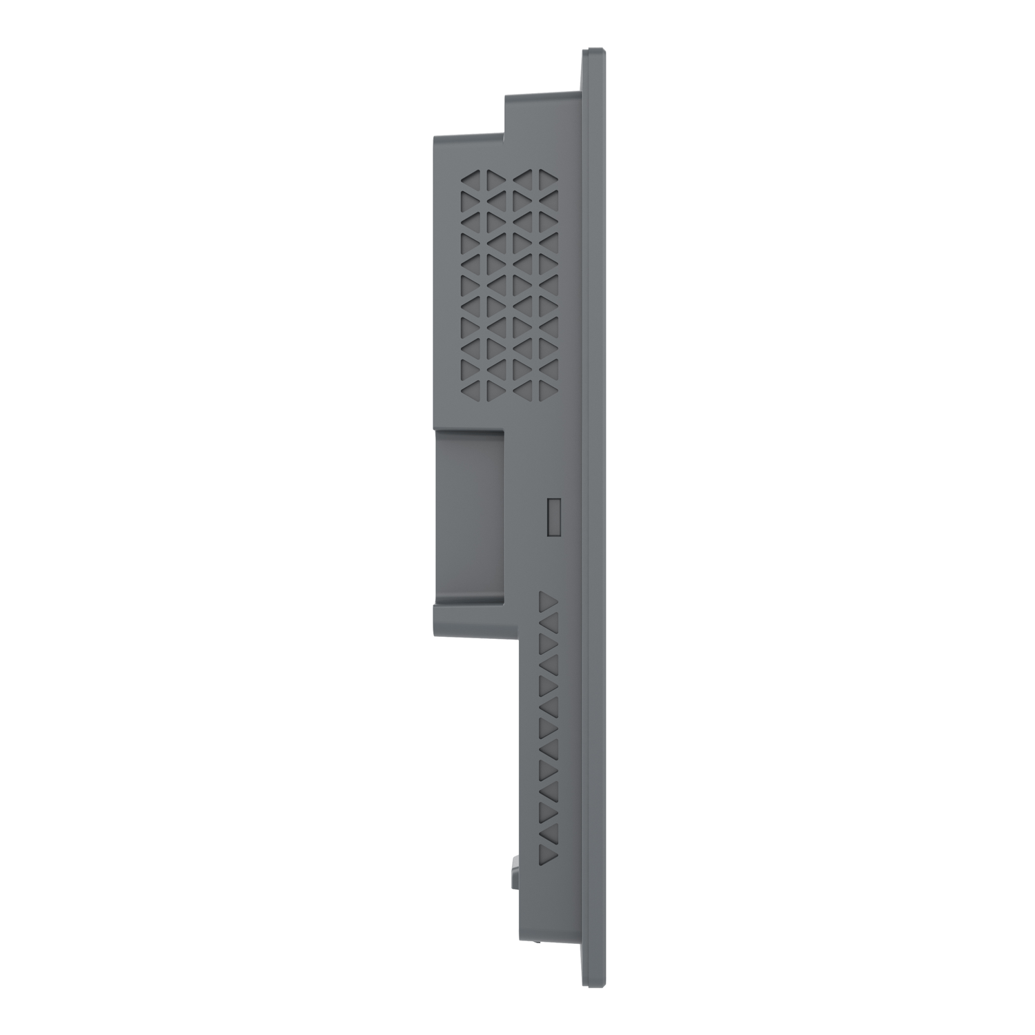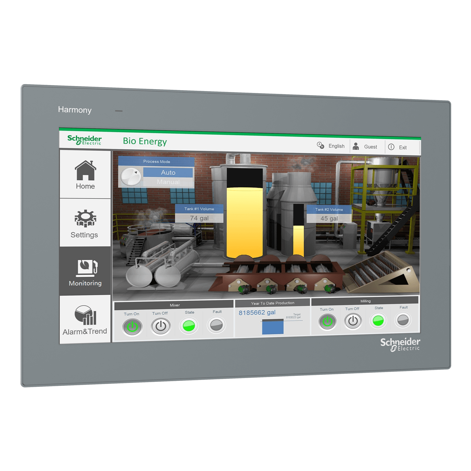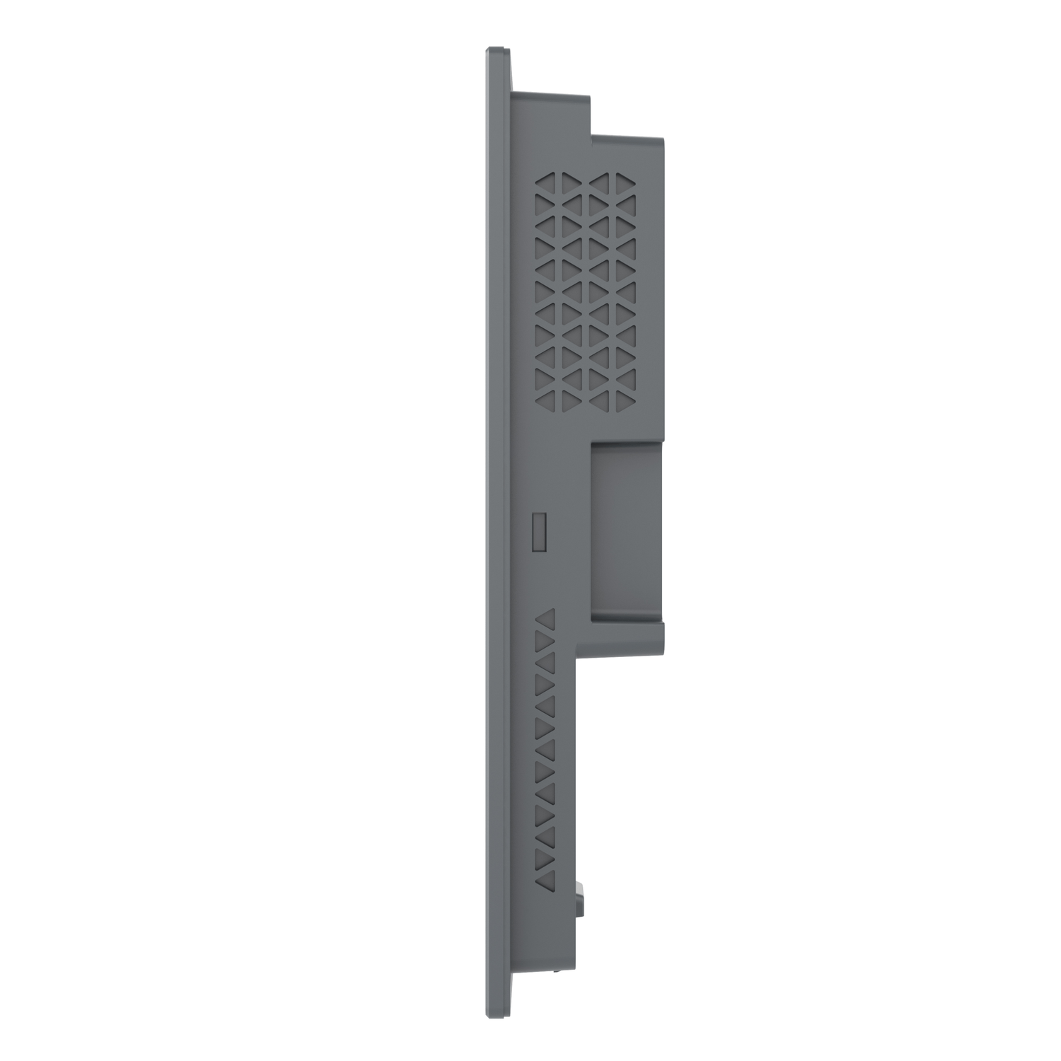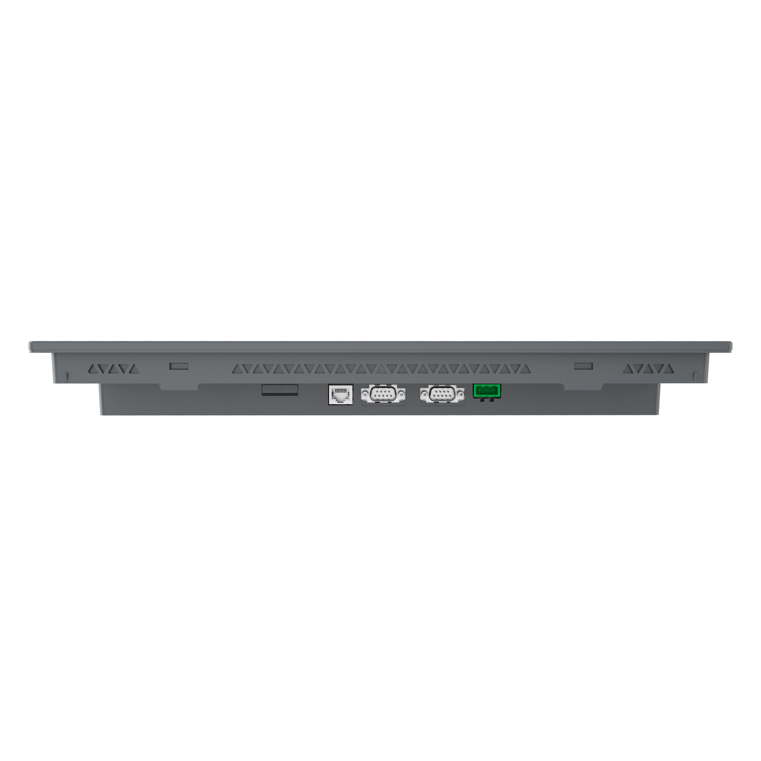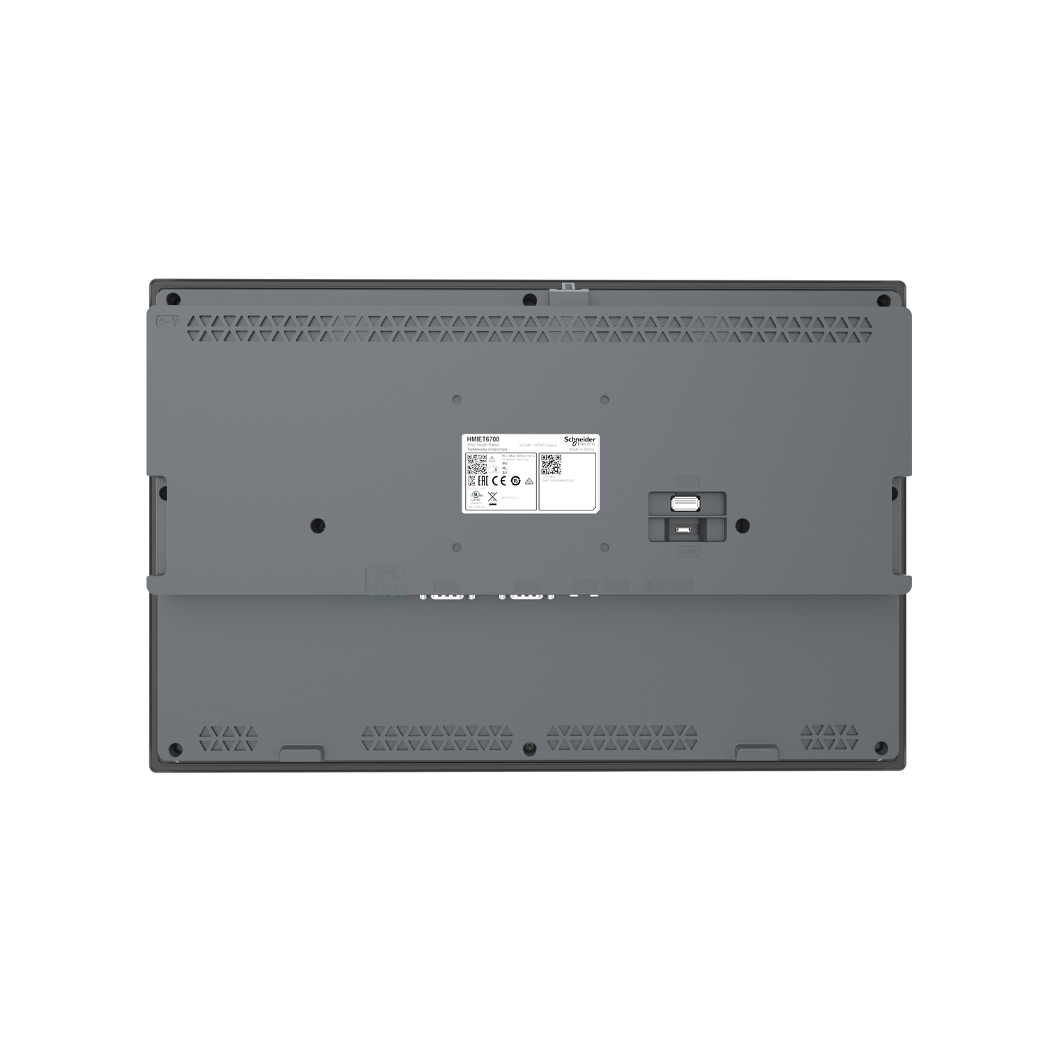 O HMIET6700 é um painel touchscreen essencial da linha Easy Harmony ET6 da Schneider Electric. Este painel HMI Ethernet resistivo de toque único possui alta resolução e mais cores. Esta interface HMI tem 15,6 polegadas de largura, 16 milhões de cores e resolução de 1.366 x 768 pixels (FWXGA). É alimentado pelo software Vijeo Designer Basic para uma experiência intuitiva do usuário. Possui uma CPU ARM Cortex-A8 de 800 MHz, 256 MB de memória de sistema e aplicativo e 128 KB de memória não volátil. Este HMI ET6 suporta portas Ethernet, COM1 (RS-232C), COM2 (RS-422/485), 1 porta USB 2.0 Tipo A e 1 porta USB 2.0 Micro-B. Suas dimensões são 412 mm (largura) x 268 mm (altura) x 50 mm (profundidade) e pesa 2,52 kg. Destina-se a indústrias como embalagens, HVAC, bombas, eletrônicos, baterias, máquinas-ferramentas e usinagem de materiais, etc. Está em conformidade com normas como EN (61000-6-4, 61000-6-2, 61131-2), UL 61010-2-201, CSA C22.2 No 61010-2-201 e certificações como UL, CE, KC, EAC, China RoHS, REACH. Os acessórios de manutenção (parafuso de fixação de instalação, conector de alimentação, bateria, etc.) e opções externas (cabo de download USB, cabo de extensão USB, folha de proteção de tela, etc.) estão disponíveis com o HMI ET6. Ele foi projetado para montagem em painel por 4 ou 6 parafusos de fixação (a quantidade de parafusos depende do tamanho da tela). Esta linha foi projetada com tela de alta resolução, mais cores e capacidade Ethernet para permitir que os OEMs otimizem seu design e investimento em HMI. Os vários graus de proteção são IP65F, NEMA Tipo 4 para uso interno, em gabinete.