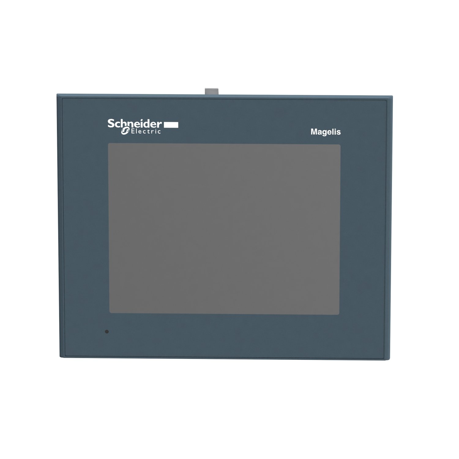 Esta interface táctil do operador (IHM) Magelis GTO IP65 é fornecida com 24 VCC, possui um display LCD TFT colorido de 5,7", 320 x 240 pixels (QVGA) e EPROM de 96 MB. Ele também tem 1 host + 1 porta USB miniB, 1 porta RS232C e 1 porta Ethernet TCP/IP. É ideal para informações e comunicação otimizadas com sistemas de automação na indústria e infraestrutura, como máquinas compactas, sistemas de manuseio, máquinas de alimentos e bebidas e indústria farmacêutica. A tela exibe mensagens de texto, objetos gráficos e diagramas sinóticos, controle e configuração de dados. Sua porta de host RS485 torna ideal para supervisionar e controlar sistemas e máquinas simples. É facilmente programável com o Vijeo Designer, quase sem a necessidade de codificação.