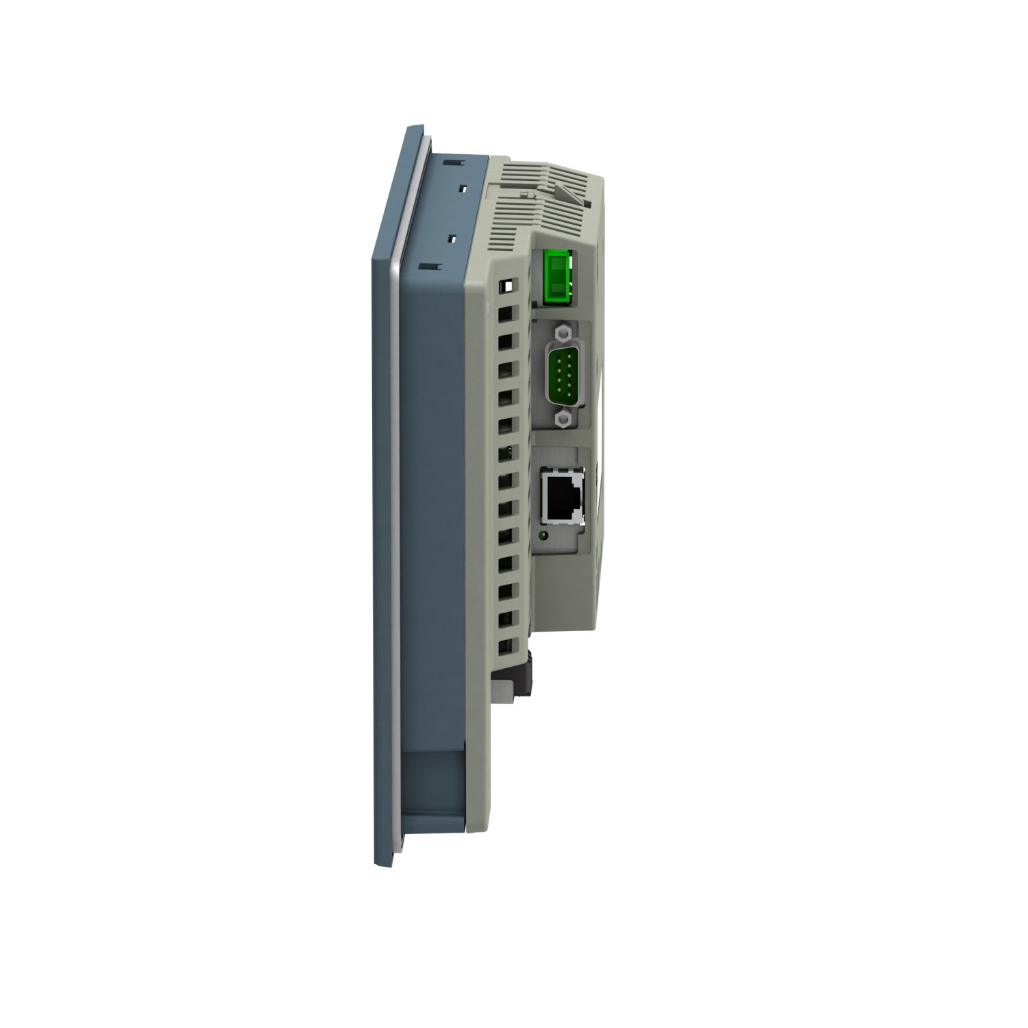 O Painel Tátil Avançado da linha GTO Harmonia é um componente de interface projetado para sistemas de automação industrial. Com uma tela colorida TFT LCD de 7,5 polegadas e retroiluminação, oferece uma experiência visual rica com 65536 cores. Utilizando tecnologia de tela tátil resistiva, possui uma resolução de 640 x 480 pixels VGA e uma ampla zona sensível ao toque de 1024 x 1024. Este painel é alimentado por uma fonte externa e opera no sistema operacional Harmonia. A bateria de lítio para RAM interna fornece autonomia por 100 dias, com um tempo de carregamento de 5 dias e uma vida útil da bateria de 10 anos. Diversas funções de sinalização, como LEDs indicadores, informam sobre o status operacional. Quanto à conectividade, possui várias portas, incluindo conexões seriais COM1 e COM2, Ethernet, e portas USB. A montagem embutida e as dimensões compactas (218 mm x 173 mm x 60 mm) facilitam a instalação em diversos ambientes industriais. Certificado conforme normas como EN 61131-2 e IEC 61000-6-2, este painel atende a padrões de qualidade e segurança. Com uma classificação IP20 para o painel traseiro e IP65 para o painel frontal, oferece proteção contra poeira e água.