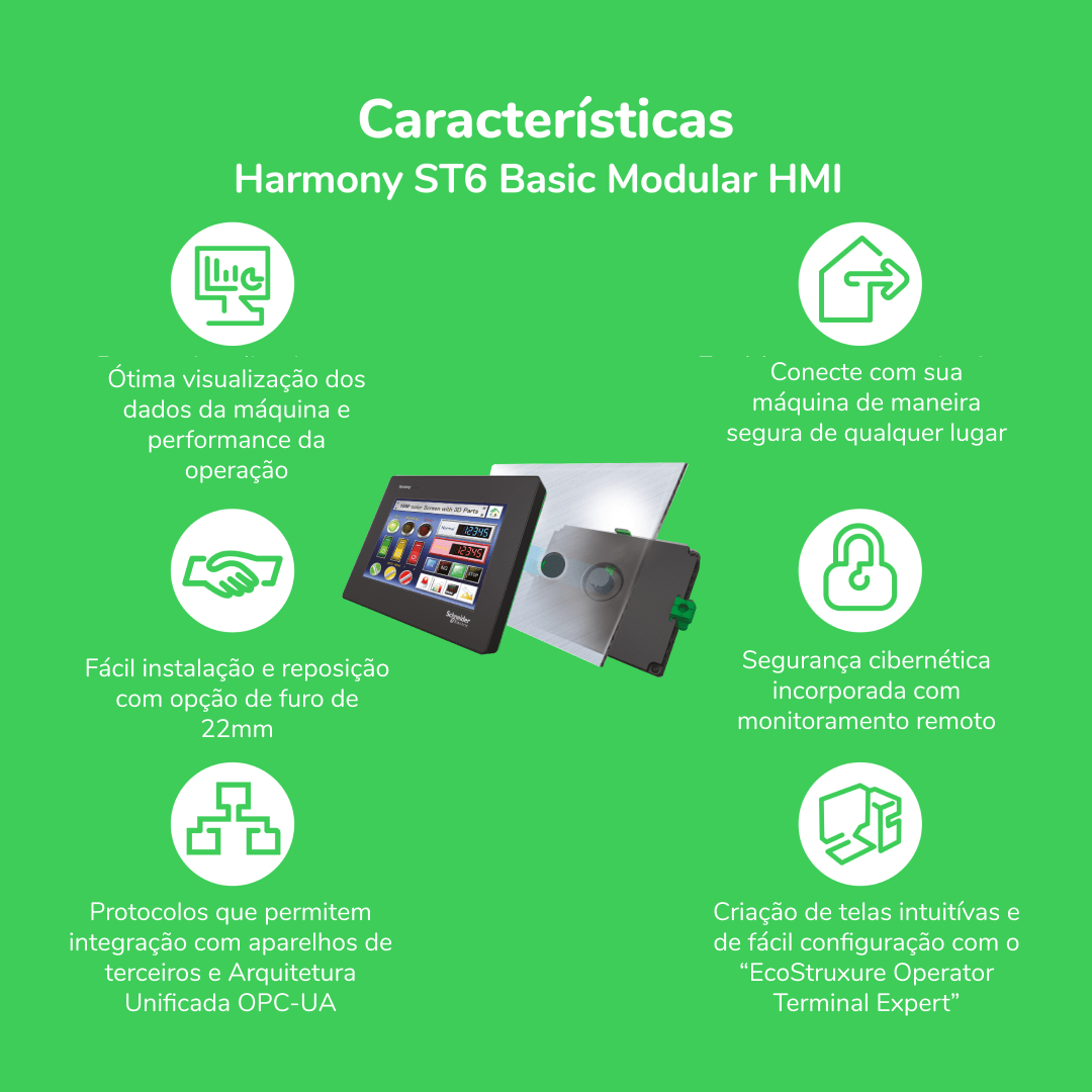 O HMIST6700 da linha Harmonia ST6 é uma tela tátil avançada, projetada para oferecer controle e monitoramento eficiente em diversas aplicações. Equipado com o nome do processador ARM Cortex-A8, esse dispositivo combina desempenho confiável com recursos avançados. Com um amplo display TFT LCD colorido de 15 polegadas, esse painel oferece uma experiência visual imersiva. Com suporte a 16 milhões de cores e uma resolução de 1366 x 768 pixels FWXGA, cada detalhe é reproduzido com precisão, garantindo imagens nítidas e vibrantes. O HMIST6700 possui um painel sensível ao toque de toque único resistiva analógica, proporcionando uma interface responsiva e fácil de usar. Com uma vida útil da luz de fundo de 50.000 horas, você pode contar com uma iluminação consistente e duradoura. Com 16 níveis de brilho ajustáveis, esse dispositivo permite uma visualização clara em diferentes condições de iluminação. Além disso, oferece suporte a vários tipos de fonte, incluindo ASCII, caracteres europeus, chinês simplificado, japonês, coreano, entre outros, atendendo às necessidades de diferentes idiomas e caracteres. Operando com uma tensão nominal de fornecimento de 24 V CC (+/- 20%), o HMIST6700 oferece uma alimentação estável e confiável. Com uma corrente de irrupção de 30 A, ele é capaz de lidar com demandas de energia mais altas, garantindo um desempenho consistente.