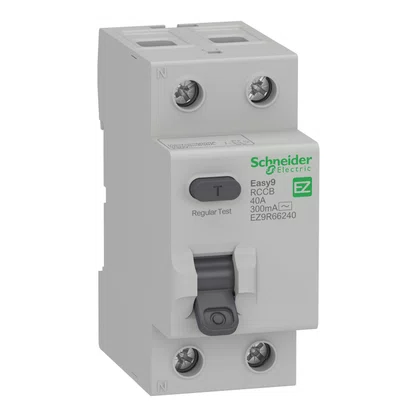 O interruptor diferencial residual IDR de baixa tensão Easy9 de Schneider Electric é fabricado para a proteção de pessoas. contra choques elétricos e proteção de instalações contra riscos de incêndio devido à corrente de falta à terra persistente.. Este produto possui 2 polos. capacidade de 40A. classe de proteção de tipo AC. sensibilidade de fuga à terra de 300mA e capacidade de interrupção de 6kA. 230V.. Este produto está em conformidade com IEC 61008-1. contando também com grau de proteção IP20.