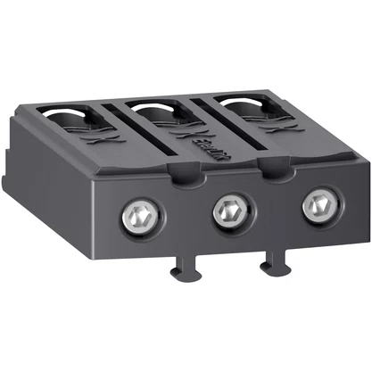 Bloco terminal TeSys Deca para montagem em relés de sobrecarga térmica LRD3xx, LR3D3xx, ou como peça de reposição para contatores tripolares LC1D40A-D80A.Fornece conexão através de terminais de parafuso EverLink BTR e garante uma proteção IP20 na frente.O bloco terminal Tesys Deca leva o selo Green PremiumTM,,que promete conformidade com as mais recentes regulamentações, transparência nos impactos ambientais, produtos circulares e de baixo CO2.