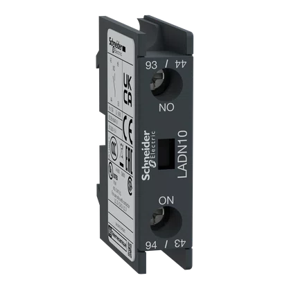 Bloco de contato auxiliar instantâneo Tesys Deca para contatores LC1D, LC1F e relés de controle CAD.Ele fornece contatos 1NA classificado até 10A/690V CA e conexão por terminais de grampo de parafuso.Montagem lateral por encaixe, proporciona alta confiabilidade e durabilidade.Este produto tem certificação multipadrão (IEC, UL, CSA, CCC, EAC).O bloco de contato auxiliar Tesys Deca leva o selo Green PremiumTM,,que promete conformidade com as mais recentes regulamentações, transparência nos impactos ambientais, produtos circulares e de baixo CO2.