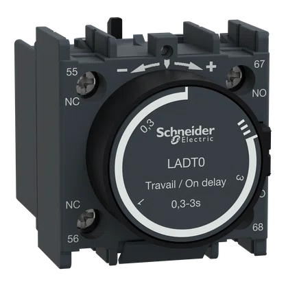 Bloco de contato auxiliar de retardo de tempo Tesys Deca para contatores LC1D, LC1F e relés de controle CAD.Bloco de montagem frontal, o qual fornece contatos 1NA+1NF classificados até 10A/690V CA, com uma faixa de configuração de atraso de ativação de 0.3-3s e conexão por terminais de grampo de parafuso.Montagem frontal por encaixe, proporciona alta confiabilidade e durabilidade.Este produto tem certificação multipadrão (IEC, UL, CSA, CCC, EAC).O bloco de contato auxiliar de retardo de tempo Tesys Deca leva o selo Green PremiumTM,,que promete conformidade com as mais recentes regulamentações, transparência nos impactos ambientais, produtos circulares e de baixo CO2.
