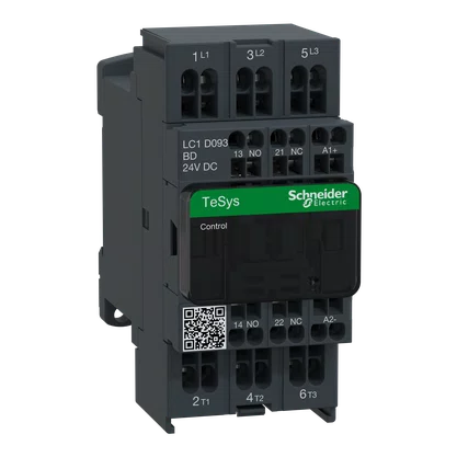 O contator Tesys Deca LC1D093BD da Schneider Electric é um componente essencial para sistemas de controle industrial, projetado para aplicações exigentes. Este modelo opera com uma corrente máxima de motor AC-3 de 9 Amperes, garantindo desempenho confiável em diversas tarefas. Sua tensão de controle é de 24VCC, com um tipo de circuito de controle em Corrente Contínua (CC), otimizado para eficiência energética e segurança em instalações modernas. As conexões para os terminais são projetadas para facilitar a instalação e manutenção, assegurando uma integração robusta nos quadros elétricos. Este contator é caracterizado por sua configuração de contatos auxiliares 1NA (Normalmente Aberto) e 1NF (Normalmente Fechado), oferecendo flexibilidade para intertravamentos, sinalização e controle de circuitos secundários. Fabricado pela Schneider Electric, um líder reconhecido em gestão de energia e automação, o LC1D093BD representa a qualidade e a confiabilidade esperadas em equipamentos de alta performance para o mercado brasileiro. Sua capacidade de operar em frequências de 50/60Hz o torna adaptável a diferentes padrões de rede elétrica. Este contator é a solução ideal para aplicações que requerem controle preciso e seguro de motores e cargas elétricas.