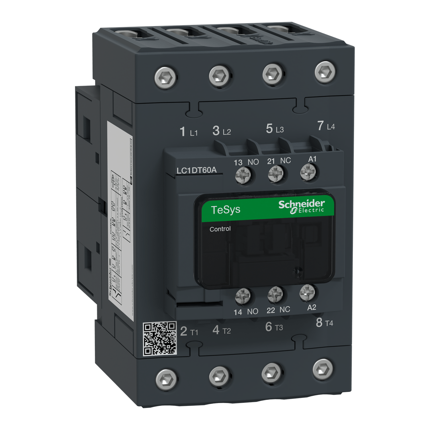 Contator TeSys Deca, 4 polos (4NA), para aplicações de carga não indutiva até 60A/440V AC-1.Ele fornece uma bobina CA de 220 V 50/60 Hz, contatos auxiliares integrados 1NA+1NF (certificado espelho NF), conexões de alimentação por terminais de parafuso EverLink BTR e controle por terminais de grampo de parafuso.Para taxas de operação de até 3600 ciclos/hora e ambientes de até 60°C, adquire alta confiabilidade e durabilidade.Compacto (largura de 70 mm), montagem em trilho DIN ou fixação por parafuso.Certificação multipadrões (IEC, UL, CSA, CCC, EAC, Marine), compatível com Green Premium (RoHS/REACh).