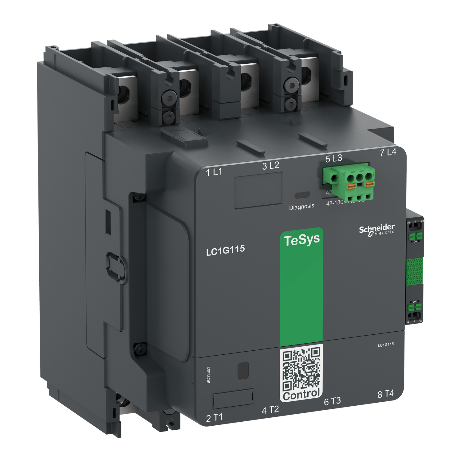 Contator de alta potência TeSys Giga, 4 pólos (4 NA) adequado para aplicações de categoria AC-1 até 275A @ 440V.Equipado com bobina eletrônica de baixo consumo de banda larga de 100-250 V CA/CC e bloco de contato auxiliar 1NA+1NF altamente confiável embutido (17V 1mA).Projetado para aplicações exigentes com taxas de operação máximas de até 300 ciclos por hora e ambientes de até 60°C.É construído com alta confiabilidade, proporcionando durabilidade mecânica de até 8 milhões de ciclos.diagnóstico de desgaste de contato (CWD) é uma função padrão, que monitora continuamente e fornece feedback através de condições saudáveis e de alarme por um indicador LED.É possível substituir o módulo de comutação (contatos principais), o módulo de controle aumentando a vida útil do contator com atividades de manutenção simples.As conexões de alimentação principais acessíveis pela frente são com conexão aparafusada e conexões de controle por terminais push-in para montagem fácil e rápida.Ele fornece proteção IP2x da face frontal com coberturas de terminal opcionais em conformidade com IEC 60529 e VDE 0106.Ele pode cobrir -25°C a 60°C de temperatura do ar ambiente de operação e montado diretamente na placa, sem desclassificação até 3000m de altitude.O contator pode ser instalado em três quadrantes do plano vertical e o relé de sobrecarga pode ser montado diretamente abaixo do contator.As dimensões são 193 mm x 143 mm x 193 mm (A x L x P), o tamanho compacto permite economia de espaço no painel.Certificação multipadrões (marcação CB, CCC, cULcs, CE, UKCA) e compatível com Green Premium (RoHs/Reach).O QR code exclusivo fornece acesso rápido a dados completos do produto.