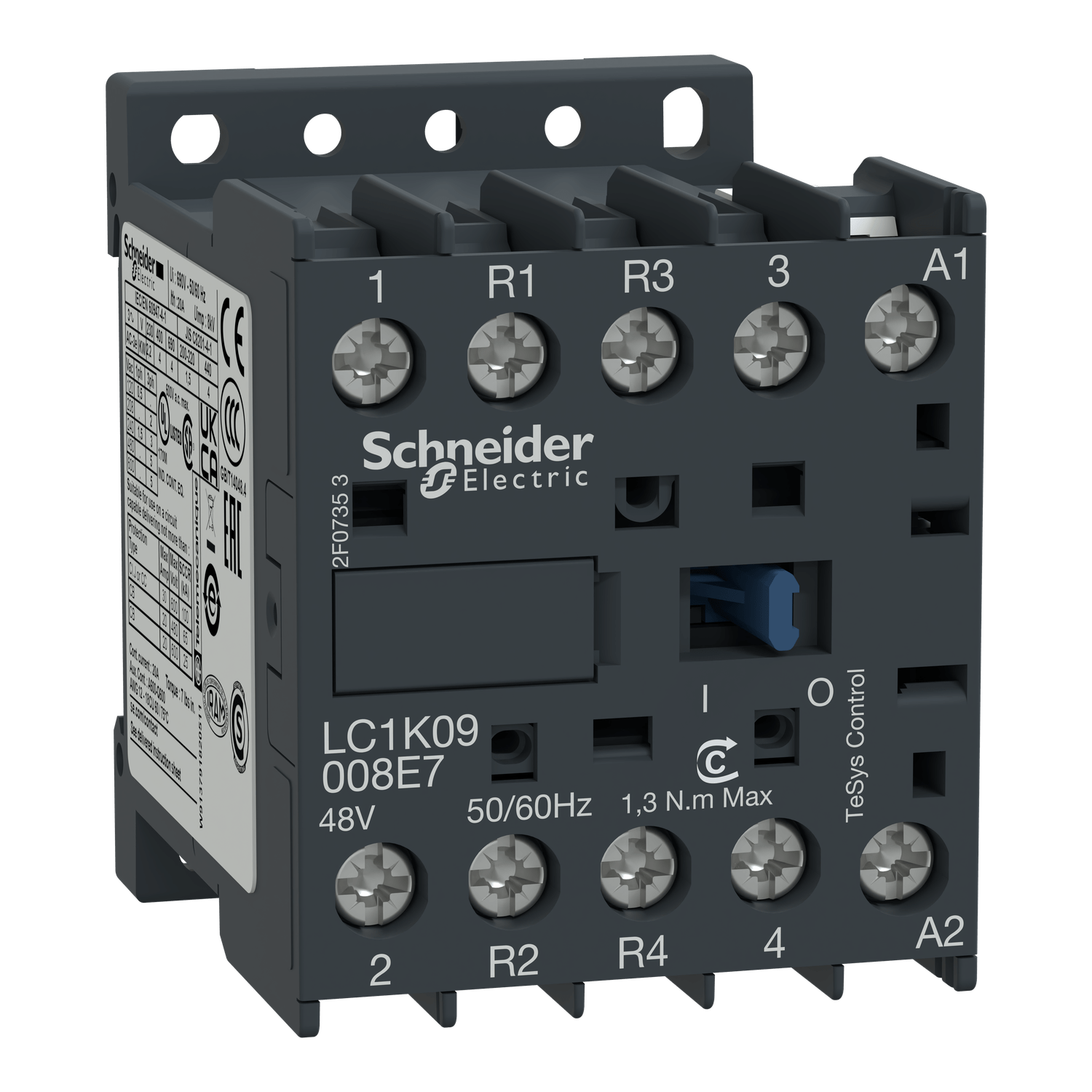 Contator TeSys K, 4 polos (2NA+2NF), para aplicações de controle de carga não indutiva até 20A/690V AC-1.Fornece uma bobina 220V 50/60Hz CA, sem contato auxiliar embutido, conexão por terminais de grampo de parafuso.Para taxas de operação de até 600 ciclos/hora e ambientes de até 50°C, proporciona confiabilidade e durabilidade para aplicações padrão.Muito compacto (largura de 45 mm), montagem em trilho DIN ou fixação por parafuso.Certificação multipadrões (IEC, UL, CSA, CCC, EAC), compatível com Green Premium (RoHS/REACh).