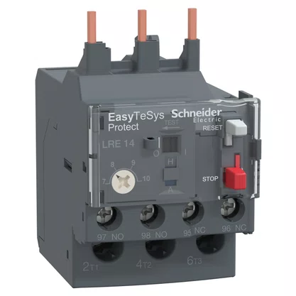 O relé LRE é um relé de sobrecarga térmica diferencial para uso com fusíveis ou disjuntores magnéticos GV2 L e GV3 L. Sua faixa de ajuste térmico é 7-10A 50/60Hz e a classe de disparo é 10A em conformidade com IEC 60947-4-1. Pode ser montado diretamente em contatores EasyPact TVS com conexão de terminais de grampo de parafuso. Protege cargas desbalanceadas e motores de 4kW a 400VAC. Fornece reinicialização manual ou automática, contato auxiliar de trip e indicador de bandeira. Disponível em todo o mundo, é certificado por vários padrões (IEC, UL, CSA, CCC, EAC, Marine) e leva o selo Environmental Data Program, que categoriza e mede os atributos ambientais e a pegada ecológica/de carbono do produto, com o objetivo de proporcionar dados transparentes e robustos que cobrem todo o ciclo de vida do produto.