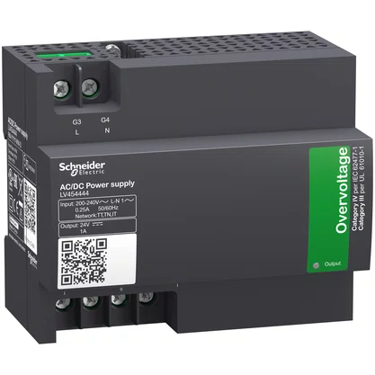 O módulo de fonte de alimentação externa, código LV454444, da Schneider Electric Brasil, é projetado para fornecer energia estável e confiável em ambientes industriais e comerciais. Este dispositivo opera com uma tensão de entrada nominal de 200VAC a 240VAC, cobrindo a faixa de frequência de 50/60Hz, garantindo compatibilidade com a maioria das redes elétricas. A saída deste módulo é de 24VDC, com uma capacidade de corrente de 1A, ideal para alimentar uma ampla gama de equipamentos eletrônicos e de controle que demandam essa especificação de tensão e corrente. A tensão nominal de alimentação [Us] está explicitamente definida dentro desta faixa de operação. Sua construção robusta e os rigorosos padrões de qualidade da Schneider Electric asseguram durabilidade e performance consistentes, sendo uma solução técnica eficiente para a conversão e fornecimento de energia.