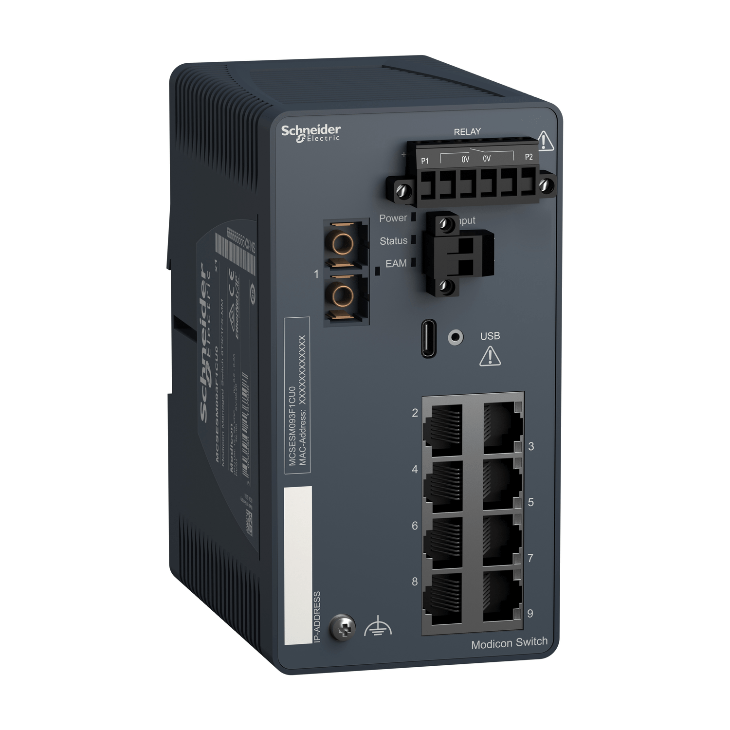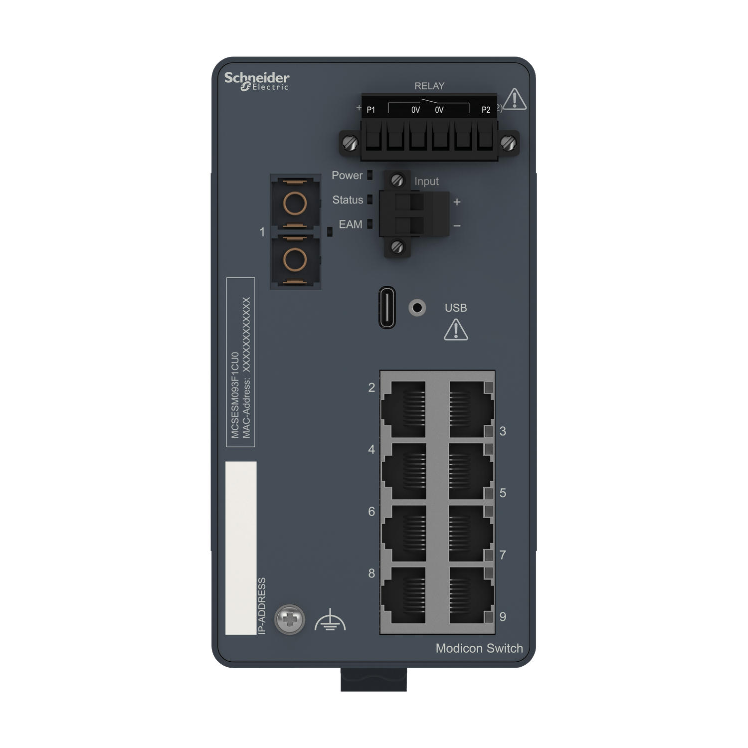O MCSESM093F1CU0 é um switch gerenciável padrão com 8 portas de cobre e 1 porta fibra óptica multimodo.Os switches da linha Modicon MCS tem alta disponibilidade de rede com diferentes protocolos e funções de redundância. Isso além de fornecer conectividade para vários dispositivos, gerenciamento de rede, segurança cibernética aprimorada e recursos de comutação avançados.
