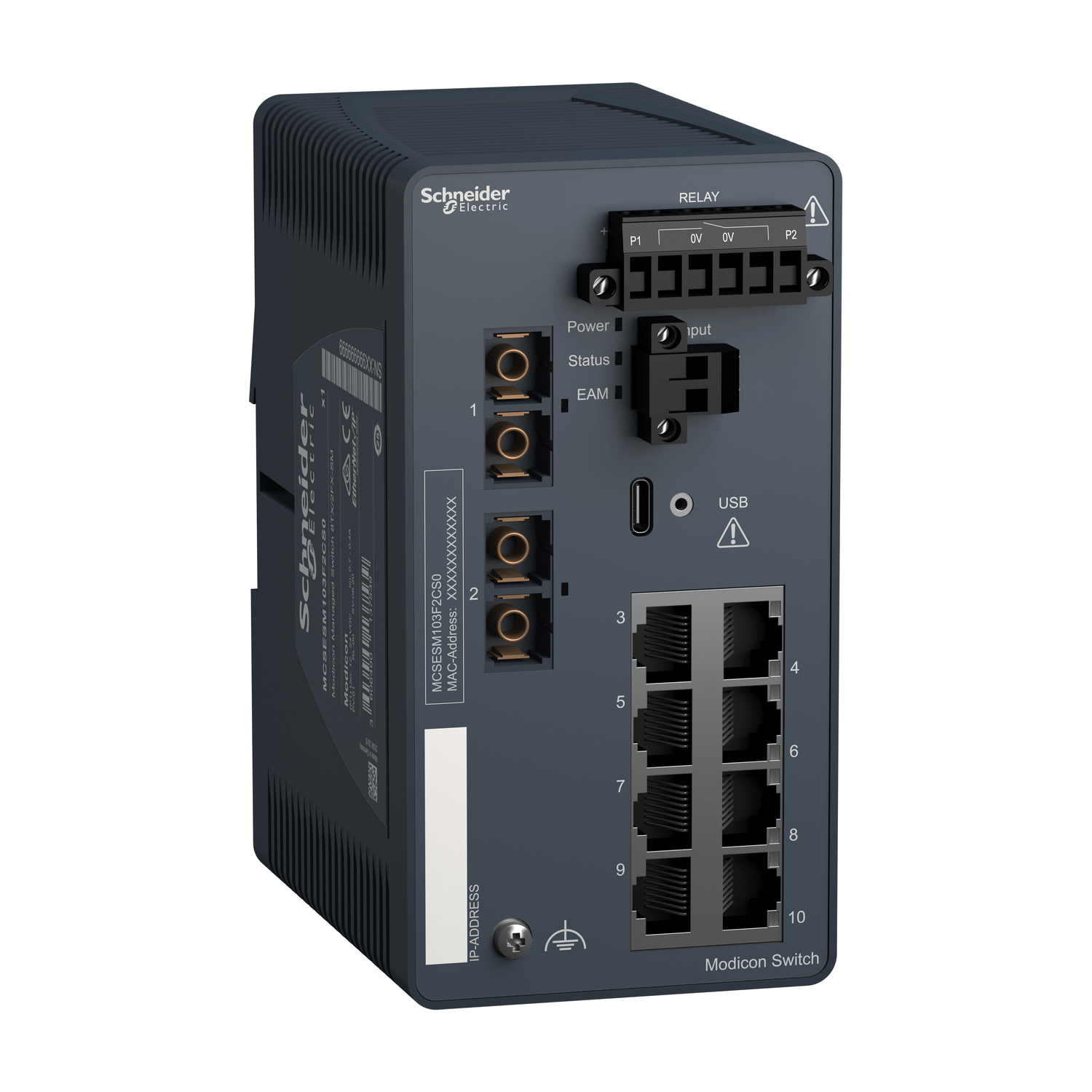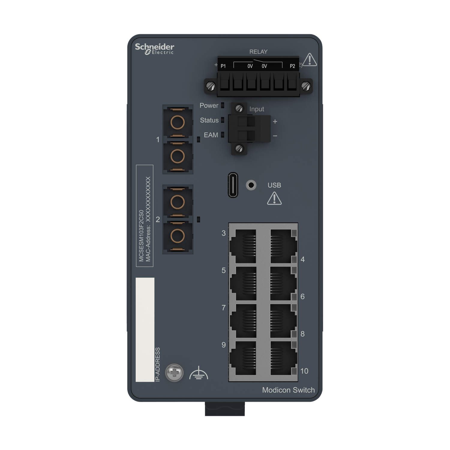 O MCSESM103F2CS0 é um switch gerenciável padrão com 8 portas de cobre e 2 portas fibra óptica monomodo.Os switches da linha Modicon MCS tem alta disponibilidade de rede com diferentes protocolos e funções de redundância. Isso além de fornecer conectividade para vários dispositivos, gerenciamento de rede, segurança cibernética aprimorada e recursos de comutação avançados.