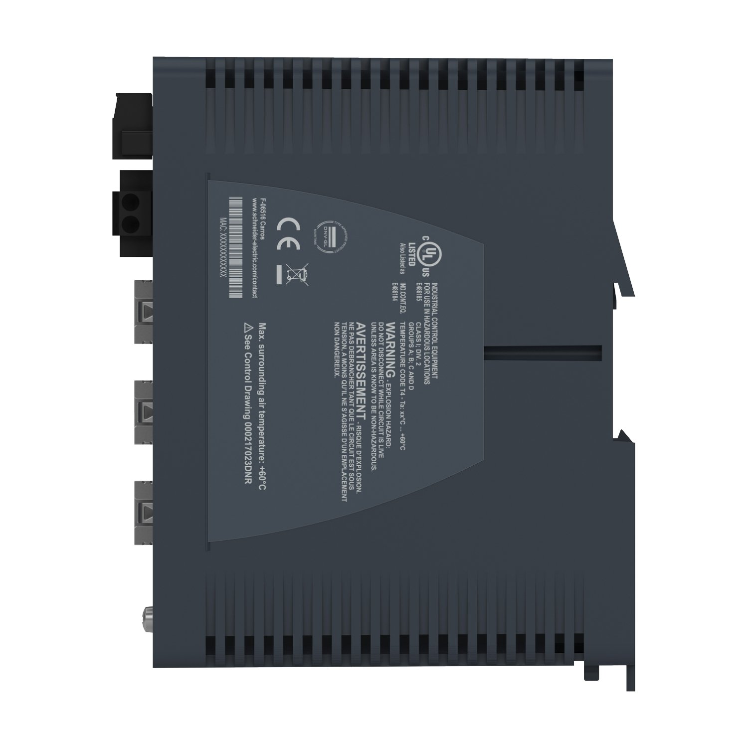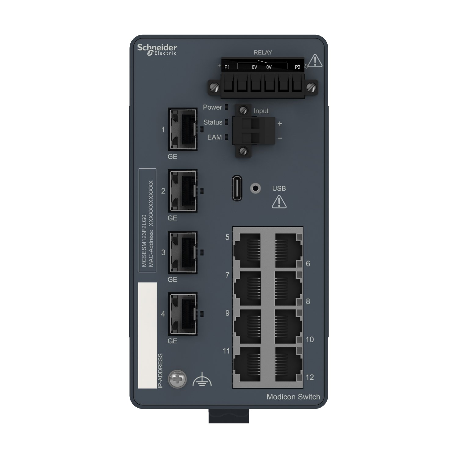 O MCSESM123F2LG0 é um switch gerenciável padrão com 8 portas de cobre Fast e 4 portas de cobre Gigabit. Os switches da linha Modicon MCS tem alta disponibilidade de rede com diferentes protocolos e funções de redundância. Isso além de fornecer conectividade para vários dispositivos, gerenciamento de rede, segurança cibernética aprimorada e recursos de comutação avançados.
