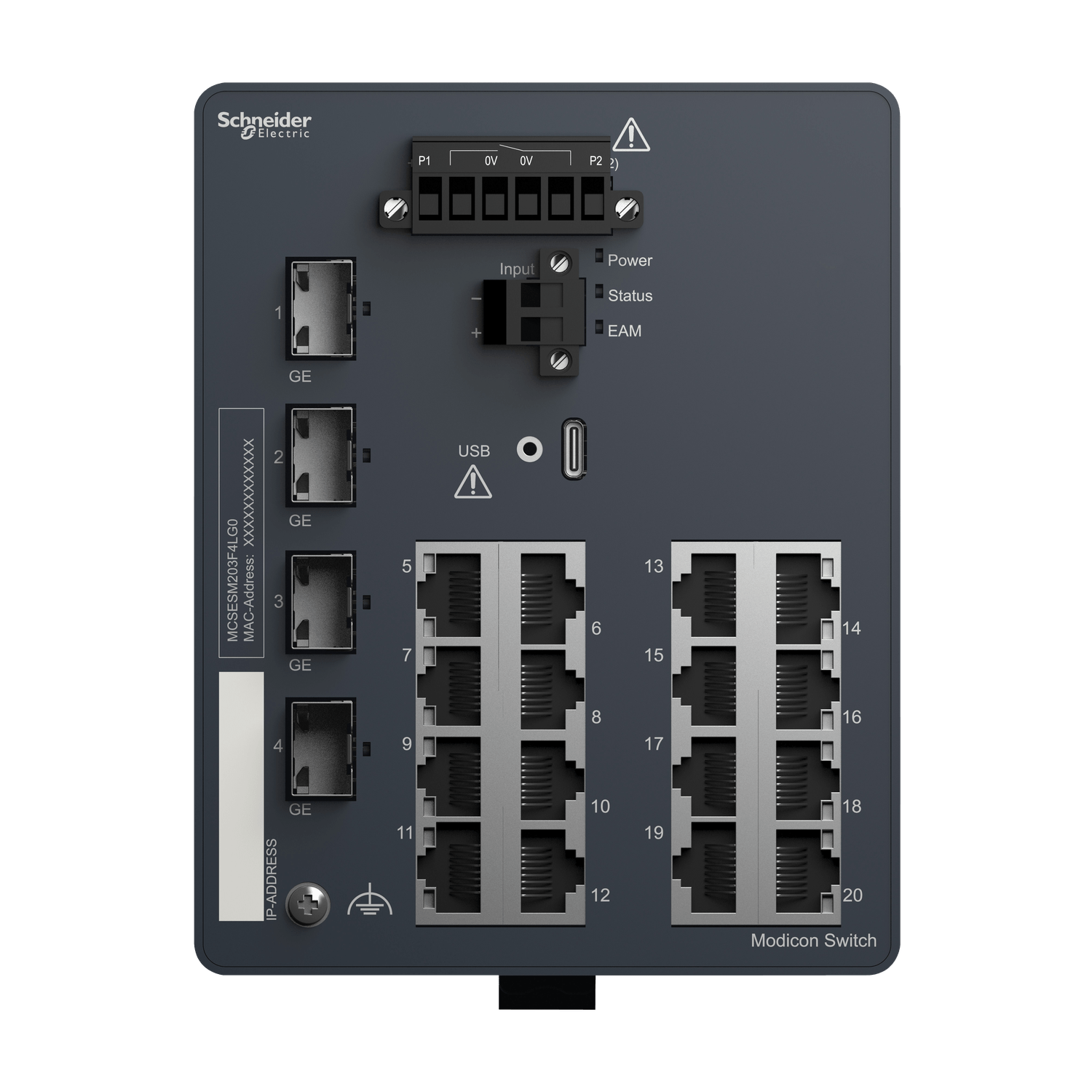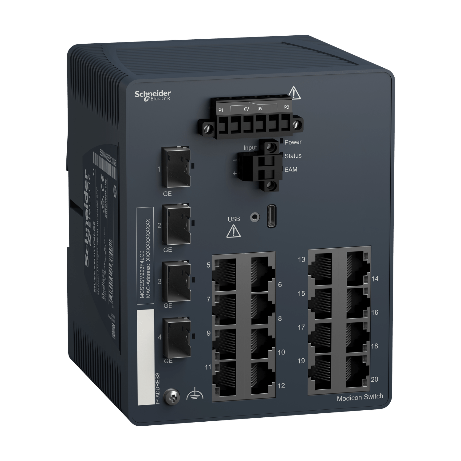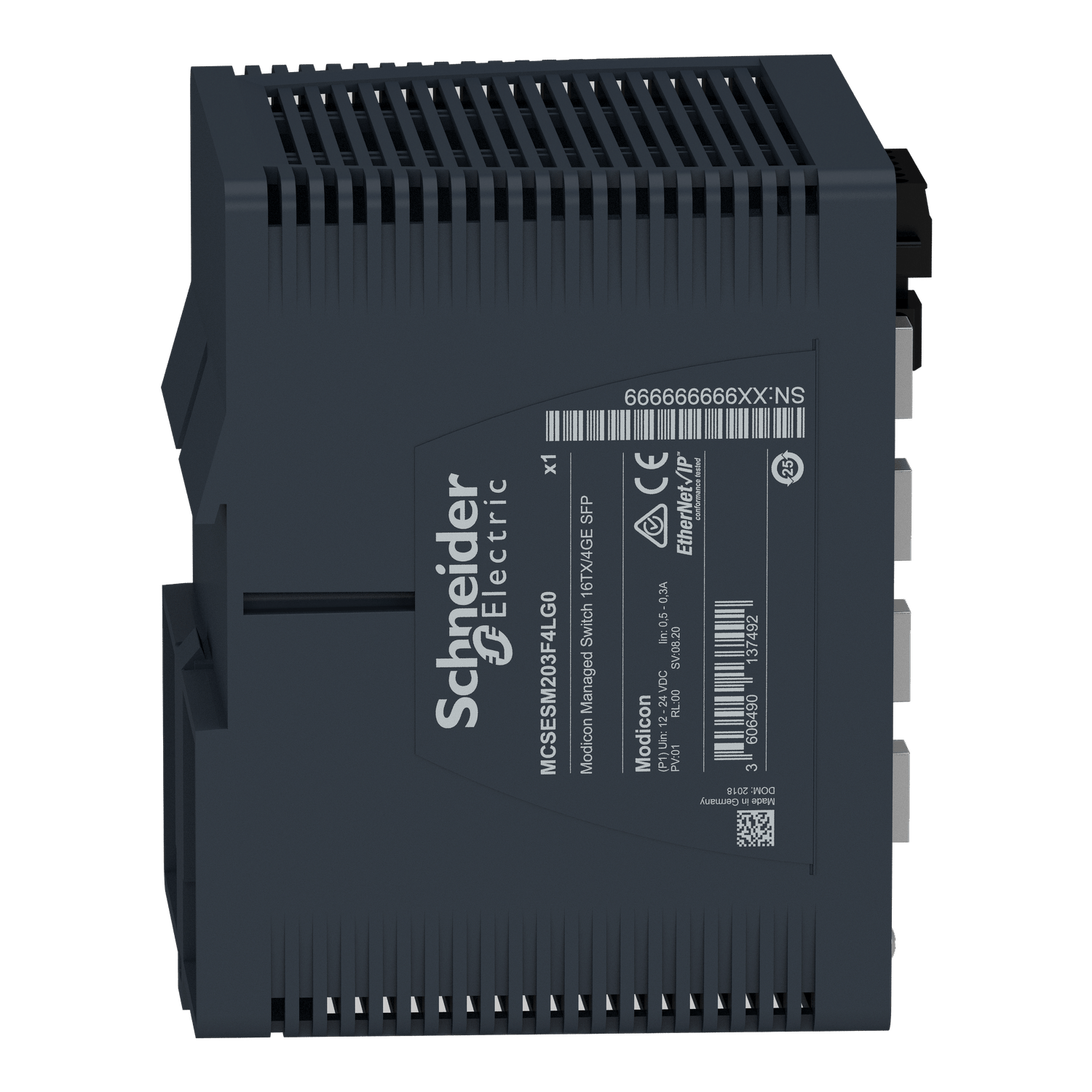 O MCSESM203F4LG0 é um switch gerenciável padrão com 16 portas de cobre Fast e 4 portas de cobre Gigabit.Os switches da linha Modicon MCS tem alta disponibilidade de rede com diferentes protocolos e funções de redundância. Isso além de fornecer conectividade para vários dispositivos, gerenciamento de rede, segurança cibernética aprimorada e recursos de comutação avançados.
