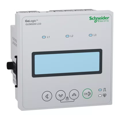 Este medidor digital de montagem em painel faz parte da série GoLogic EM3000. Este dispositivo oferece precisão de Classe 0.5 conforme o padrão IEC 62053-21 e é capaz de medir tensão, corrente, frequência e fator de potência, além do consumo em kWh. O protocolo de comunicação é Modbus RS485 e o medidor tem um display LED com 3 linhas para todos os parâmetros, 4 dígitos, oito segmentos e 15 mm de altura. As dimensões mecânicas são 96 mm de largura, 96 mm de altura e 80 mm de profundidade, para um peso de produto de 300 g.