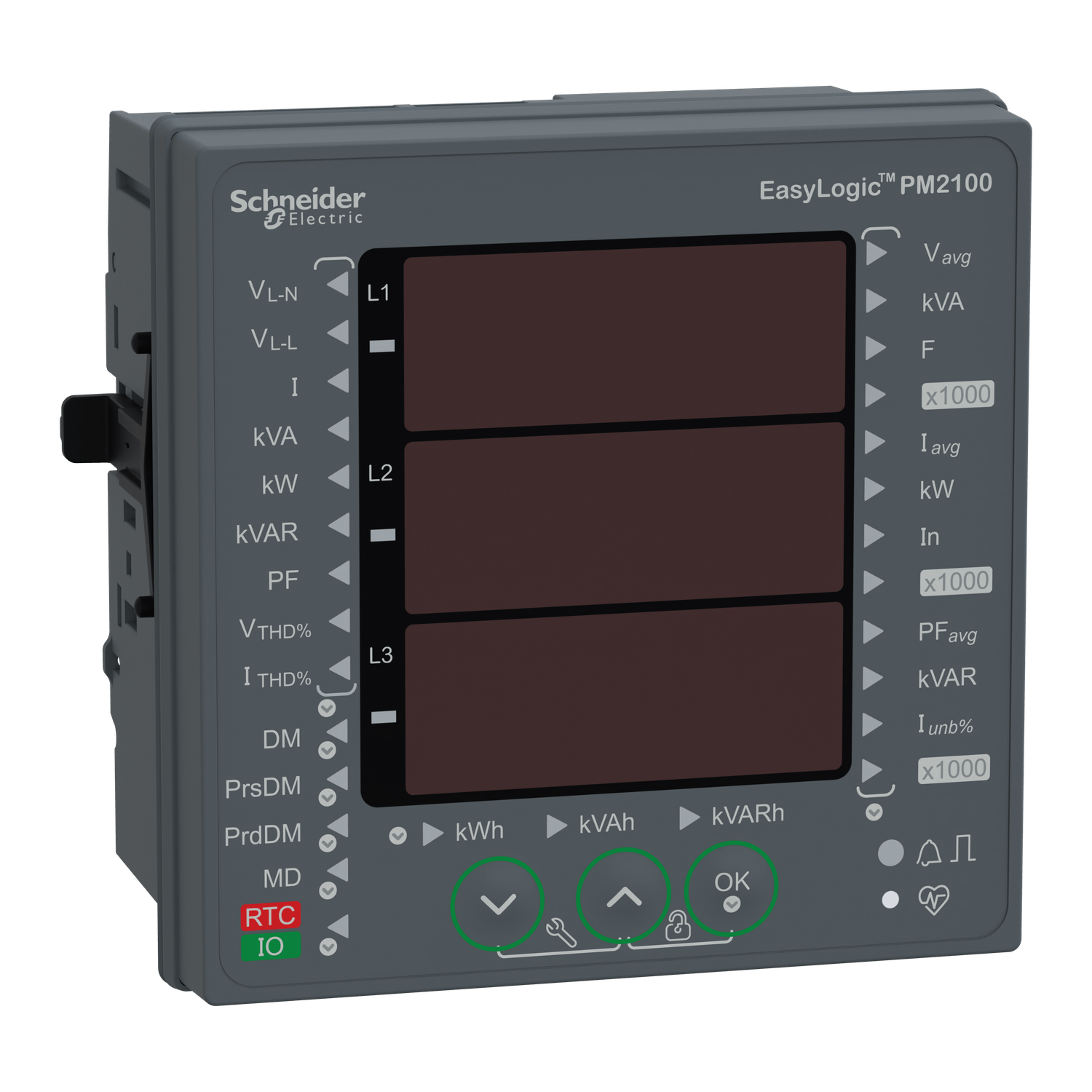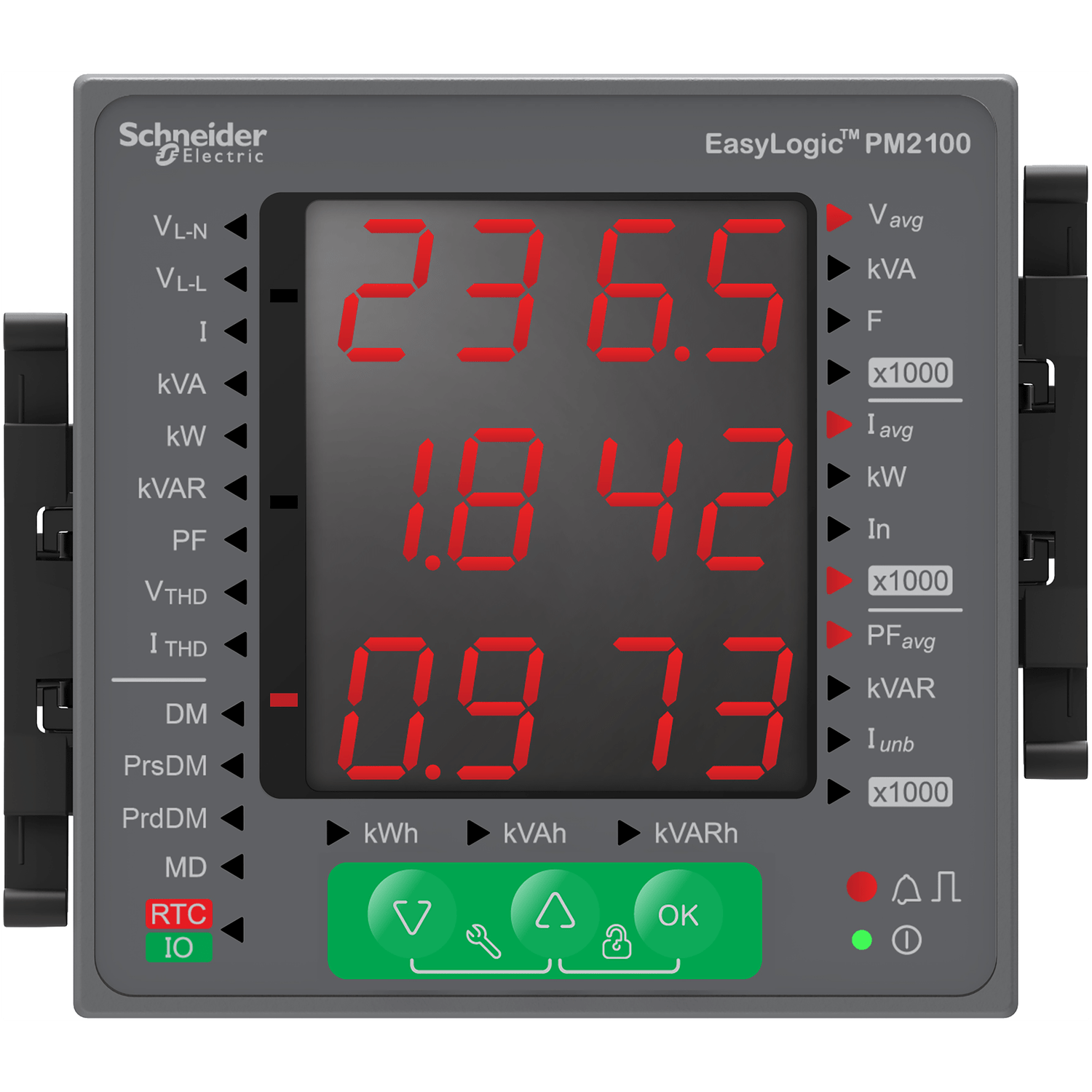 Este dispositivo é um medidor de potência de montagem em painel ou embutida com um tamanho de moldura de 96 mm por 96 mm com 3 linhas de display LED vermelho brilhante de 4 dígitos e 14,2 mm de altura.O medidor mede a energia ativa de acordo com a classe de precisão Classe 0.5S em conformidade com a norma IEC 62053-22 com taxa de amostragem de 64 amostras por ciclo.Capaz de medir todos os três vetores de potência e energia como Ativo, Aparente e Reativo ao lado de Tensões, Corrente, Frequência e Fator de Potência.Mais a distorção harmônica total e harmônicos individuais até a 31ª ordem harmônica.O medidor funcionará na frequência de rede de 50Hz ou 60Hz e aceita tensões de alimentação de controle universal variando de 80 a 300 V de linha a tensões neutras CA ou CC.A corrente nominal para este medidor é de entrada 1A ou 5A.ele suporta até 13 tipos diferentes de esquemas de fiação em tipos de configuração monofásica, bifásica ou trifásica.A faixa de tensão de medição entre as fases é de 35 a 480 V linha a linha CA de 45 a 65 Hz, enquanto é de 20 a 277 V entre linha e neutro.Possui porta de comunicação RS485 sobre protocolo Modbus RTU.O medidor pode ser atualizado com módulos IO adicionais opcionais para monitoramento WAGES.Esses módulos vêm com dois canais de entradas e saídas digitais ou entradas e saídas analógicas.Esta versão pode ser configurada para 23 tipos diferentes de alarmes armazenados em 40 registros.As dimensões do produto são as seguintes: largura 3,78 pol (96 mm), profundidade 2,16 pol (54 mm), altura 3,78 pol (96 mm) e peso do produto 10,58 onças (300 g).