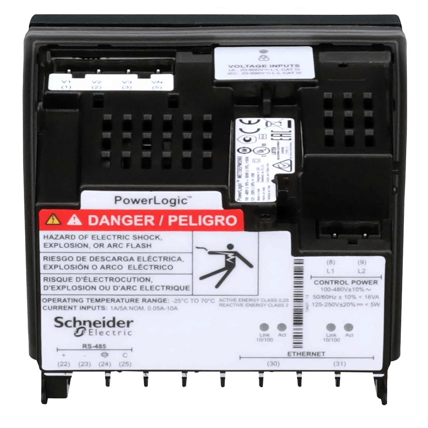 Este dispositivo é um medidor de energia embutido com um display LCD retroiluminado de 96 mm por 96 mm.,O medidor fornece precisão Classe 0.2S de acordo com o padrão IEC 62053-22 e 128 amostras por ciclo.,O medidor medirá Energia, Potência Ativa e Reativa, Tensão, Corrente, Frequência, Fator de Potência e até o 63º Harmônico.,Inclui 1,1 MegaBytes de memória para até 14 parâmetros selecionáveis com intervalo e duração configuráveis.,Este medidor também possui o monitoramento direto da corrente de neutro.,O medidor funcionará em uma rede de 50Hz ou 60Hz e aceita tensão de alimentação variando de 100 a 480 VCA e 125 a 250 VCC.,A corrente nominal de linha para este medidor é de entrada 1A ou 5A e suportará configurações monofásicas e neutras, trifásicas ou trifásicas e neutras.,A faixa de tensão de medição entre as fases é de 20 a 690 VCA em 45 a 65 Hz.,A faixa de medição entre Fase e Neutro é de 20 a 400 VCA em 45 a 65 Hz.,Os protocolos de comunicação são Modbus RTU e ASCII 2 fios com suporte a porta RS485 mais Modbus TCP/IP, Ethernet/IP e BACnet/IP baseado em 10/100 Mbit/s, Ethernet em cadeia com suporte a porta RJ45.,Os recursos de comunicação incorporados permitem o suporte do protocolo DNP 3.0, o acesso a um servidor web integrado e um gateway Serial para Ethernet.,O medidor também possui quatro entradas digitais com suporte WAGES e duas saídas digitais.,São 52 alarmes configuráveis e suporta oito horários tarifários.,As dimensões do produto são as seguintes: largura 3,78 polegadas (96 milímetros), profundidade 3,03 polegadas (77 milímetros), altura 3,78 polegadas (96 milímetros) e peso do produto 15,9 onças (450g).
