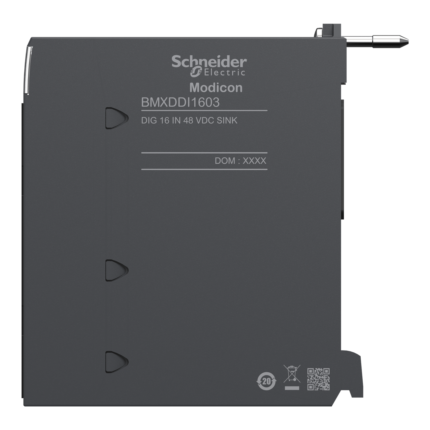 Este módulo de entrada digital faz parte da linha Modicon X80. Composto por 16 canais de entrada. alimentados com 48V DC (positivo). ele é ideal para ambientes severos. operando em temperaturas de. -25°C a +60°C. Possui proteção contra picos de corrente. Além disso. proporciona uma padronização. de montagem e implantação nas arquiteturas de automação da linha Modicon. reduzindo o estoque de. peças de reposição. manutenção e custos de treinamento. Pode fazer parte da arquitetura totalmente. aberta do EcoStruxure Plant. sendo flexível. confiável. sustentável. segura e protegida. garantindo. eficiência e praticidade em operações de automação. Atende às necessidades de aplicações em. Transporte. Água e Águas Residuais. Bens de Consumo Embalados. Mineração. Minerais. Metais. Geração. de Energia. Energias e Produtos Químicos e Data centers.