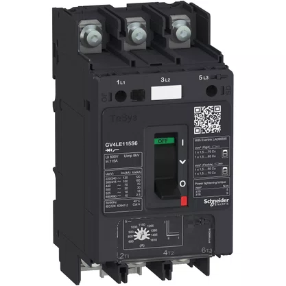 Disjuntor motor TeSys GV. 3 polos (3P). 80A/690V. para proteção de motores trifásicos 22-37kW@400V.. Oferece proteção magnética. capacidade de interrupção Icu 50kA@400V. controle start-stop por manopla. conexão para barras ou cabos com terminais.. Proteção magnética ajustável por mostrador. faixa de configuração de 6 a 14 pol.. Disponibiliza localizações internas para blocos de contato auxiliares adicionais (OF. SD) e unidades de disparo de tensão (MN. MX).. Para ser usado em associação com um relé de sobrecarga térmica classe 10 ou 20 para proteção completa do motor.. Certificação multipadrões (IEC. CCC. EAC. Marine). compatível com Green Premium (RoHS/REACh).
