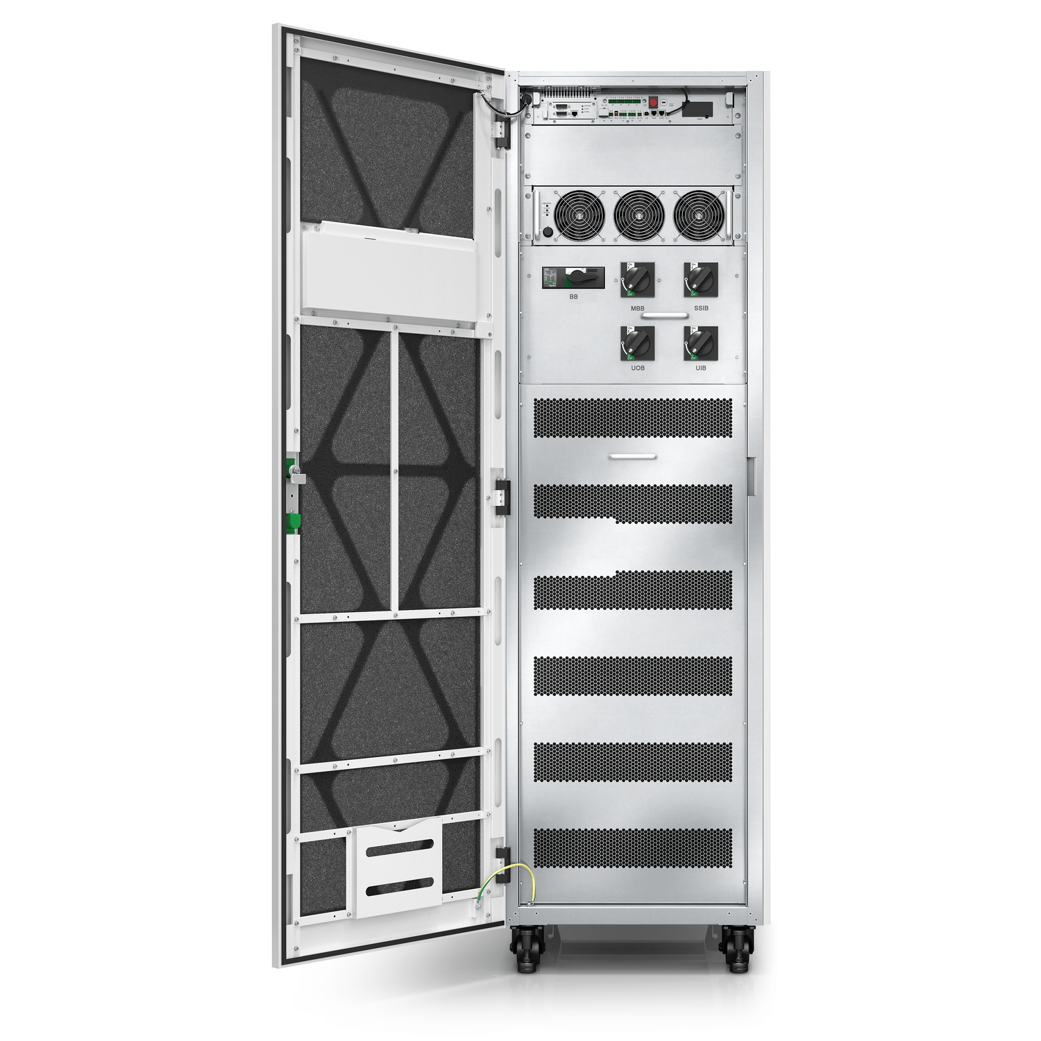 UPS trifásico de 60 kVA fácil de instalar, conectar, usar e fazer manutenção. Com recursos avançados, especificações elétricas robustas e design compacto, o Easy UPS 3M facilita a continuidade dos negócios para data centers de pequeno e médio porte e outras aplicações críticas. Inclui serviço de inicialização 5x8 e 3 strings de baterias modulares internas de 9 Ah, expansíveis para 6 para maior autonomia.