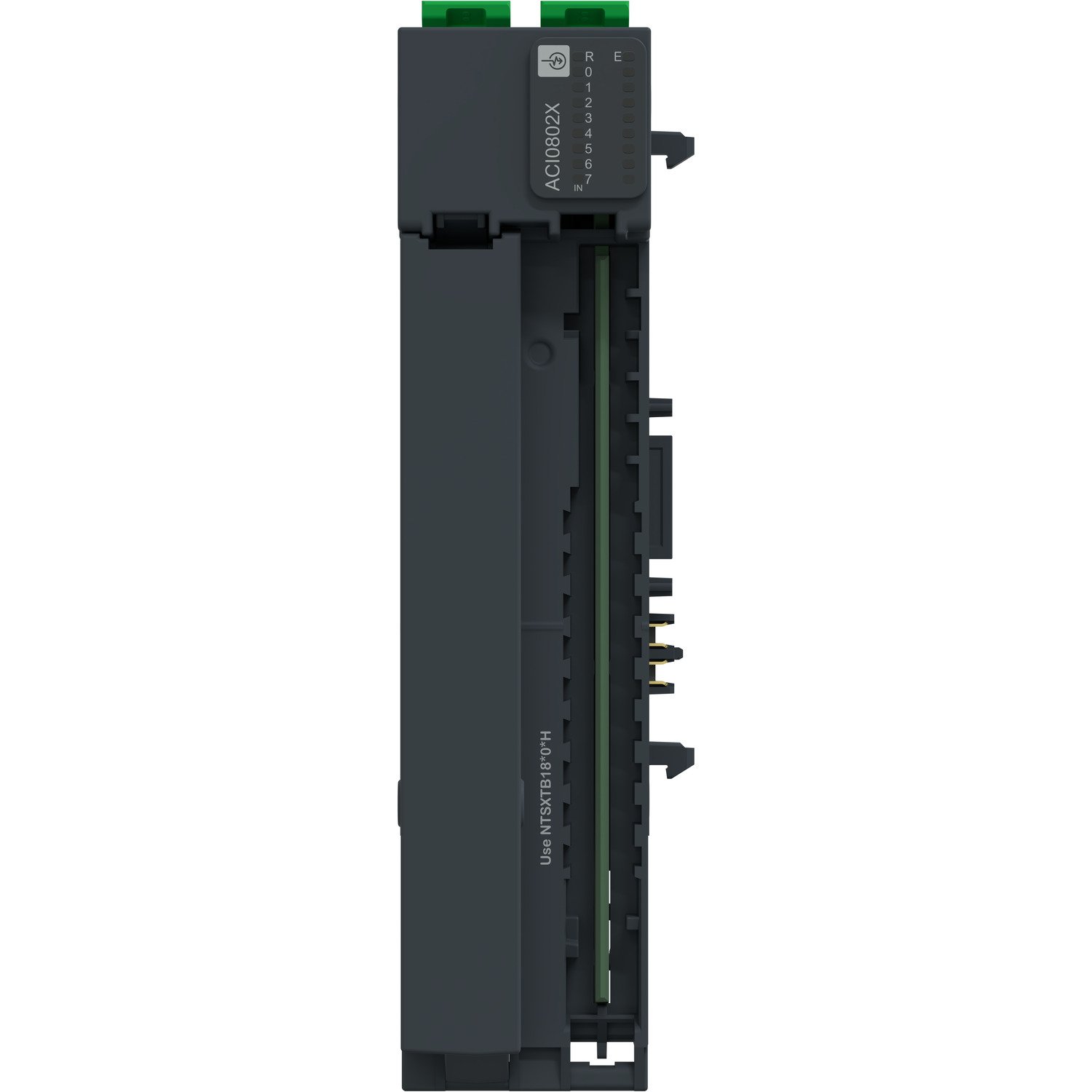 Este kit de entrada analógica faz parte da linha Modicon Edge I/O NTS. Este kit é uma pré-montagem de uma base e um módulo de entrada analógica. Possui 8 entradas de corrente do tipo ±20mA, 0 a 20mA e 4 a 20mA, com uma conexão de 1-2 fios. Esta solução completa é uma plataforma abrangente para gerenciar múltiplos sinais analógicos, garantindo um processamento de dados eficiente. Funciona em uma faixa de temperatura de -20 a 60 graus Celsius. As entradas são alimentadas por um loop de corrente. O grau de proteção IP é IP20. Mede 137,6mm de altura, 30mm de largura, 88mm de profundidade e pesa 0,131kg. É compatível com módulos de entrada, saída, comuns ou especialistas em movimento. O pacote contém o módulo já montado em sua base. O kit é instalado em um trilho DIN, com um clipe de travamento mecânico. O Modicon Edge I/O NTS é um sistema de E/S pronto para o futuro para agregação de dados. O Modicon Edge I/O NTS é um sistema de E/S IP20 distribuído e robusto com ampla escolha de módulos.