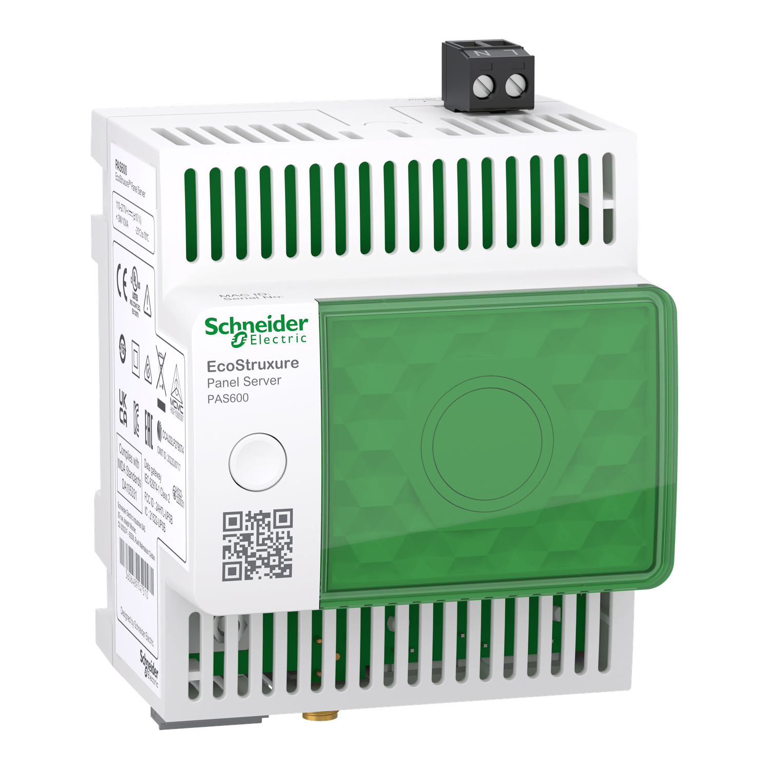 O EcoStruxure Panel Server é um gateway que fornece conexão de dispositivos IoT inteligentes com ou sem fio a software de controle de borda ou aplicativo em nuvem.,Conecte dispositivos sem fio da Schneider Electric, como PowerTag Energy, PowerLogic HeatTag, Power Tag Ambiant, Power Tag control e outros.,Conecte a maioria dos dispositivos Modbus/RS485 e Modbus/TCP do mercado, incluindo medidores de energia e dispositivos de proteção da Schneider Electric.,As páginas web amigáveis oferecem monitoramento de primeiro nível de medições de todos os dispositivos conectados, incluindo registro de todos os alarmes.,Solução de problemas simples ou o sistema através de páginas da Web incorporadas com informações e logs de diagnóstico avançados.,Comissionamento fácil por meio de páginas da Web incorporadas ou com o EcoStruxure Power Commissionig, que oferecerá relatórios de comissionamento e recursos avançados.,As dimensões do produto são as seguintes: largura 71,8 milímetros, profundidade 70,2 milímetros e altura 85 milímetros.,Fonte de alimentação máxima de 110 a 277 VAC/DC 50-60Hz 3W/10VA. -25°C a +70°C Temperatura de funcionamento. 5-95% de umidade relativa.,Principais certificações, incluindo CE, UL/CSA, IEC61010, UL61010, IEC61974-1, certificação marítima, IEC61443-4-2, RCM, EAC e UKCA.,O gateway pode ser montado em trilho DIN em um gabinete modular. Possui conectores IP20, bico frontal IM40 e IP30 nas demais faces.,Dois conectores RJ45 ethernet 10/100 Base-T. Conector de estilo aberto Modbus RS485.,Um conector para antena de rede Wi-Fi/sem fio externa.,Conexão celular direta por meio de roteador LTE externo conectado por Ethernet ou Wi-Fi.,Ajuste perfeito para o software EcoStruxure Edge, como Power Monitoring Expert, Power Operations e EcoStruxure Building Operations.,Projetado para aplicativos de nuvem EcoStruxure, como Facility Expert, Asset Advisor e Resource Advisor.