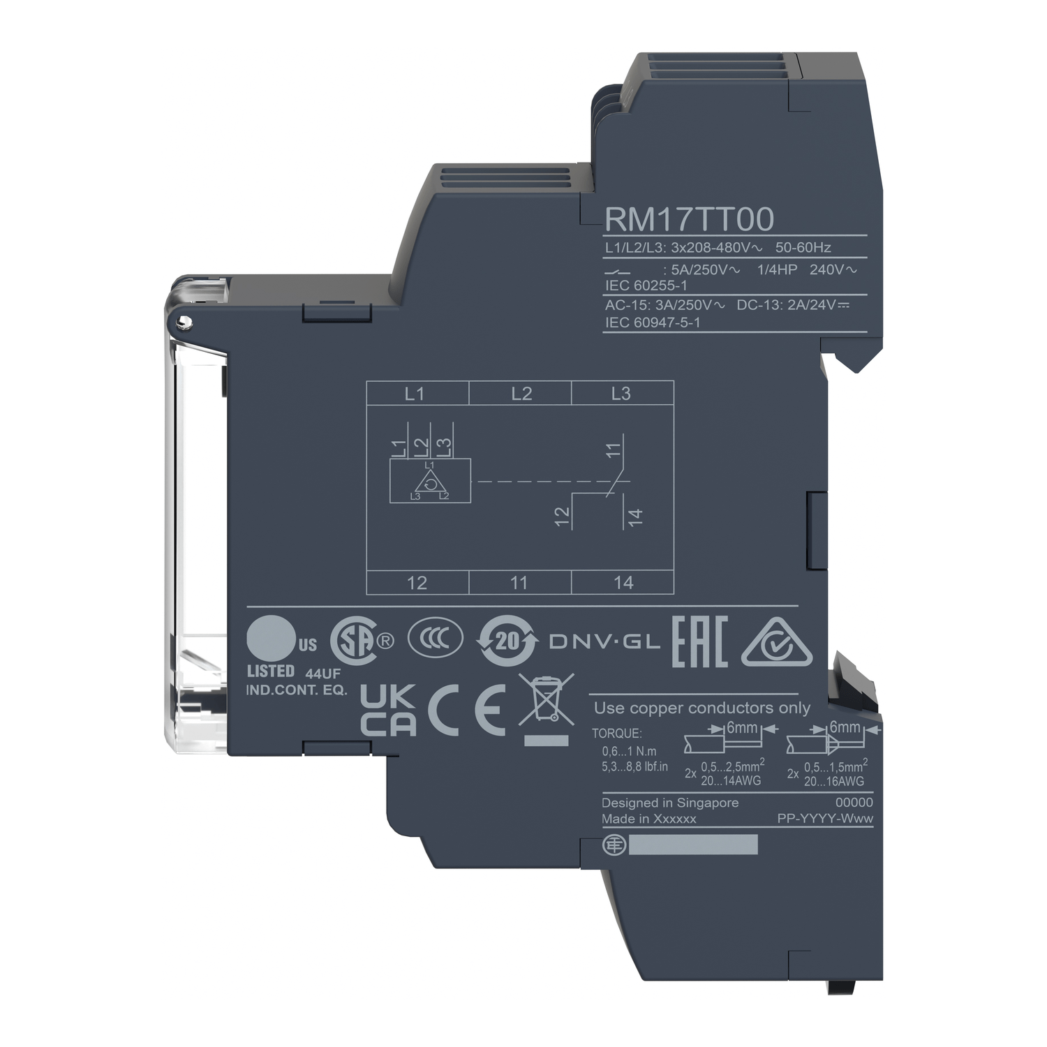 O RM17TT00 é um relé de medição de redes trifásicas da linha Harmony RM17.Este relé modular de dupla função de controle de alimentação trifásico é ideal para monitoramento de valores elétricos em painéis de controle industriais e prediais.Aplica-se a um amplo tipo de aplicações de automação industrial, como içamento, embalagem, elevadores, têxteis, água.Possui um dos formatos mais finos do mercado, permitindo uma instalação fácil e flexível em trilho DIN, usando o mesmo espaço que qualquer dispositivo DIN modular de 1 pólo.Também oferece tampa selável, ajustes simples e precisos com cortadores de parafuso.O produto monitora sua própria fonte de alimentação, quando a fonte de alimentação está anormal, o relé de saída é desenergizado.Controlador de dupla função para ampla escolha selecionada em sistemas automatizados lógicos cabeados, ideal para reforma de instalações antigas sem uso de CLP.
