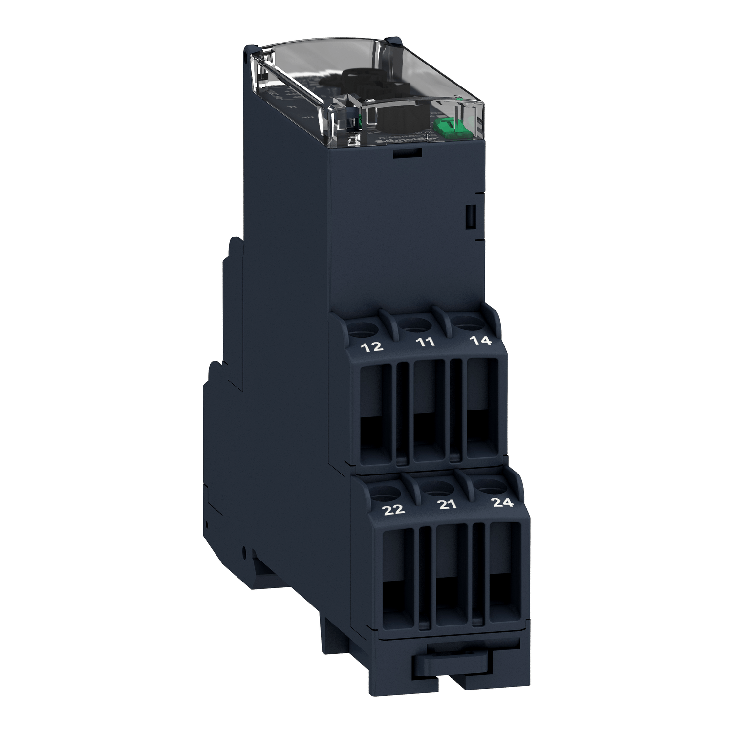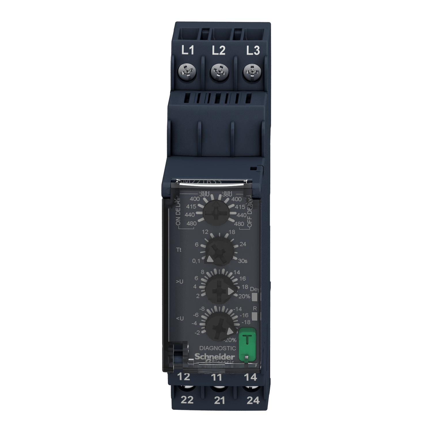 Este relé Harmony RM22-TR permite o monitoramento de fase e subtensão/sobretensão em redes trifásicas.,Este relé de controle modular multifuncional de 3 fases é ideal para o monitoramento de valores elétricos em painéis de controle industriais e de edificações.,Ele se aplica a um amplo tipo de aplicações de automação industrial, como de içamento, embalagem, elevadores, têxteis, água.,Ele tem um dos formatos finos do mercado com 22,5 mm de largura, permitindo uma instalação flexível e fácil no trilho DIN, usando o mesmo espaço que qualquer dispositivo DIN modular de 1 polo.,Ele também oferece um botão de diagnóstico, tampa selável, configurações simples e precisas com aparadores de parafuso.,Ele fornece ao usuário informações sobre o gerenciamento e a falha do desligamento automático para uma rápida identificação e solução de problemas da falha.,controlador multifunções para ampla escolha selecionado em sistemas automatizados lógicos com fiação, ideal para renovação de instalações antigas sem usar um PLC.