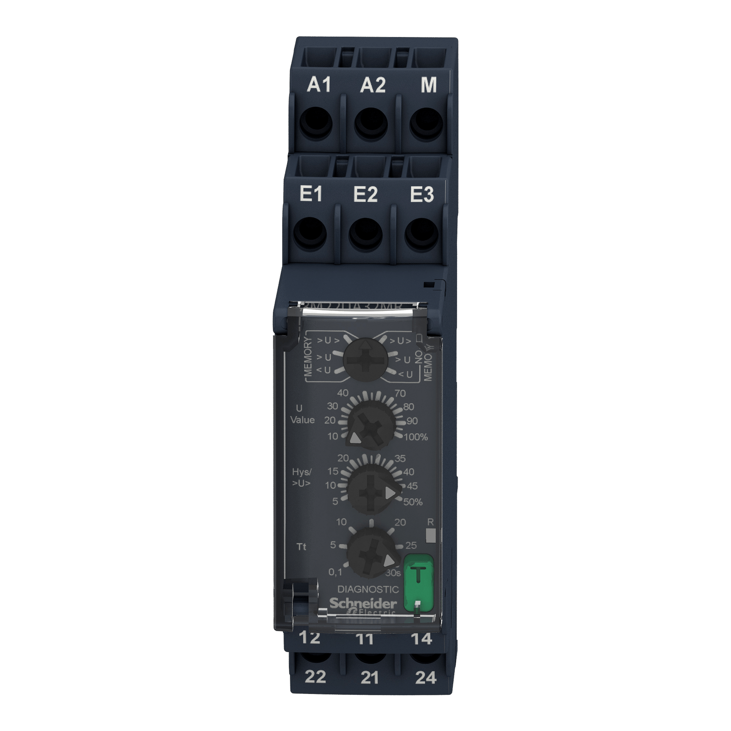O RM22UA32MR é um relé de medição de redes monofásicas da linha Harmony RM22.Este relé modular de dupla função de controle de alimentação trifásico é ideal para monitoramento de valores elétricos em painéis de controle industriais e prediais.Aplica-se a um amplo tipo de aplicações de automação industrial, como içamento, embalagem, elevadores, têxteis, água.Possui um dos formatos mais finos do mercado, permitindo uma instalação fácil e flexível em trilho DIN, usando o mesmo espaço que qualquer dispositivo DIN modular de 1 pólo.Também oferece tampa selável, ajustes simples e precisos com cortadores de parafuso.O produto monitora sua própria fonte de alimentação, quando a fonte de alimentação está anormal, o relé de saída é desenergizado.Controlador de dupla função para ampla escolha selecionada em sistemas automatizados lógicos cabeados, ideal para reforma de instalações antigas sem uso de CLP.