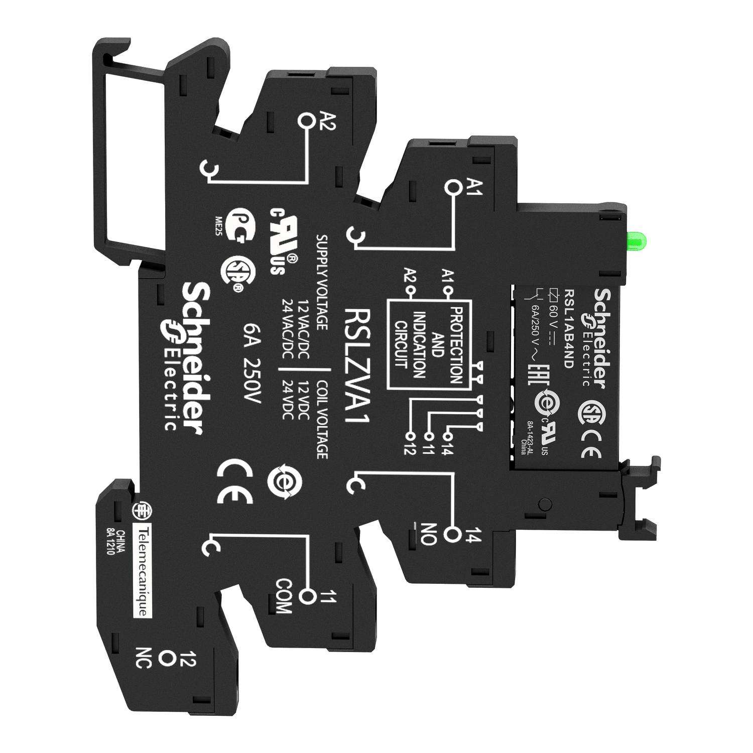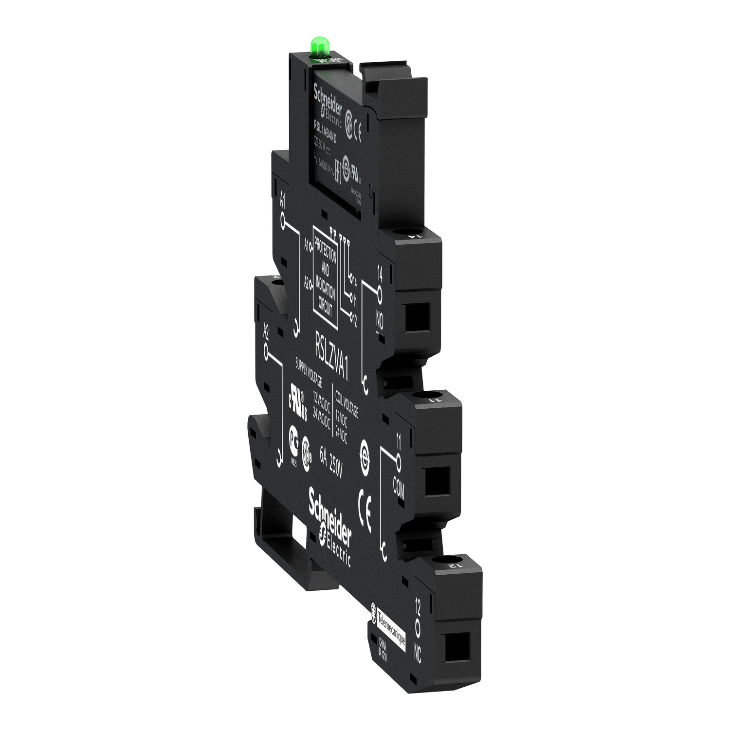 O RSL1PVFU é um relé plug-in de interface slim da linha Harmony RSL.,Tem uma tensão de controle de bobina de 110VCA/CC e tem 1 contato normalmente aberto fechado com uma corrente de 6A.,Possui grande variedade de contatos para uso em alta corrente nominal.,Ajuda a reduzir o tamanho dos painéis e aumenta a confiabilidade da máquina, podendo ser montado em praticamente qualquer lugar.,Um dos relés de interface mais finos do mercado, pode ser instalado em praticamente qualquer lugar.,É compatível com alta capacidade de interrupção ou requisitos de aplicação de corrente de baixo nível.,Funcionabilidade para sistemas lógicos automatizados conectados para complementar as funções de controladores lógicos programáveis industriais (CLPs).