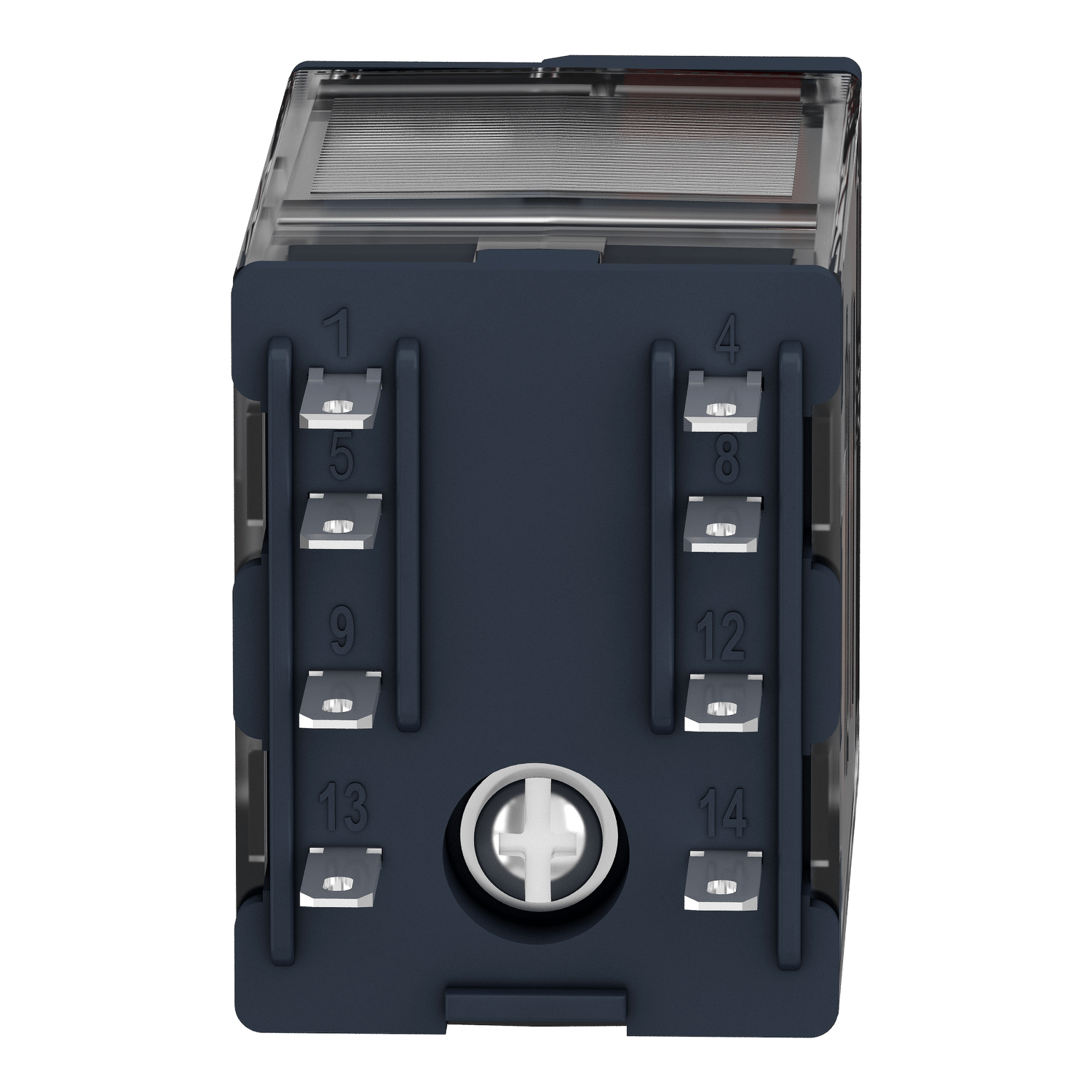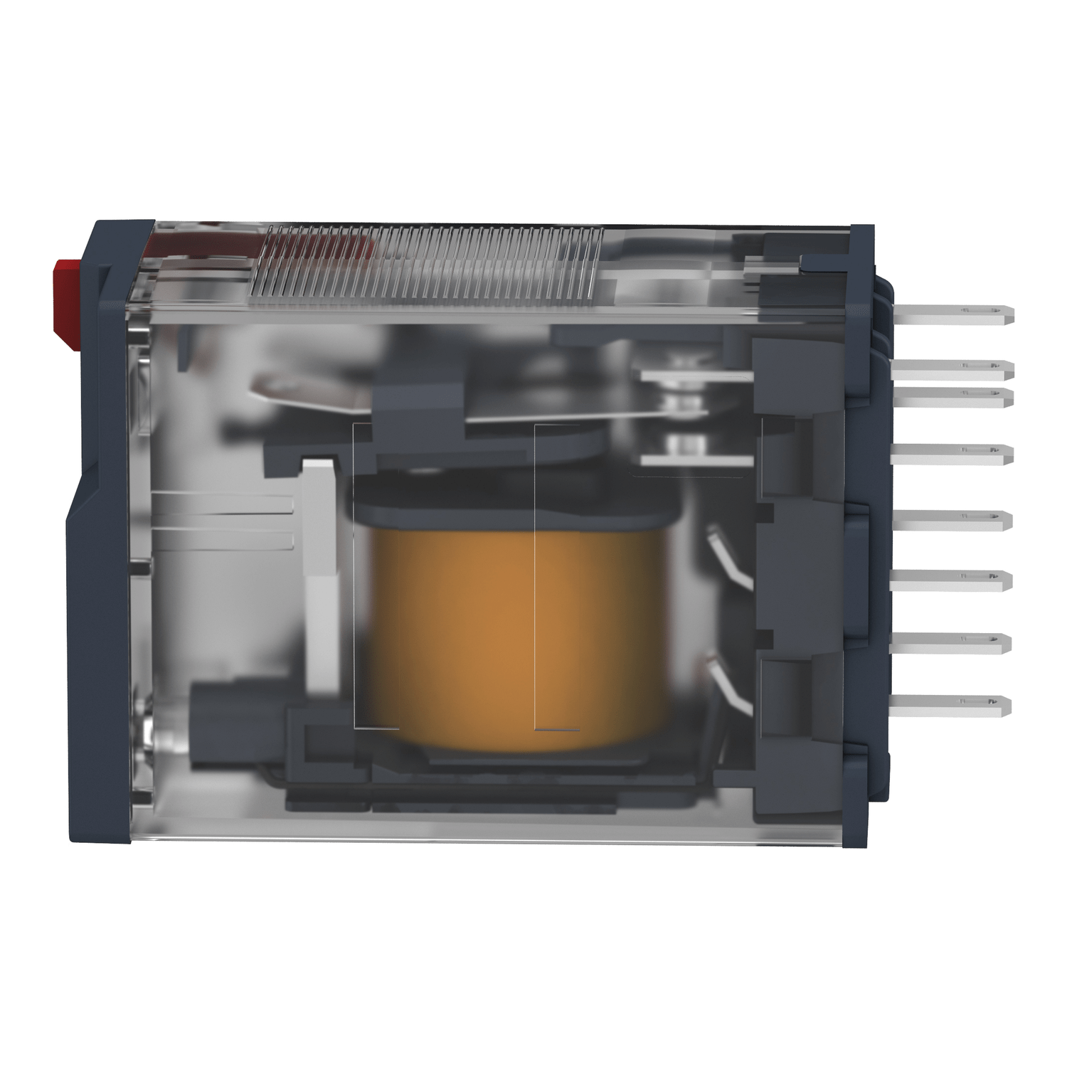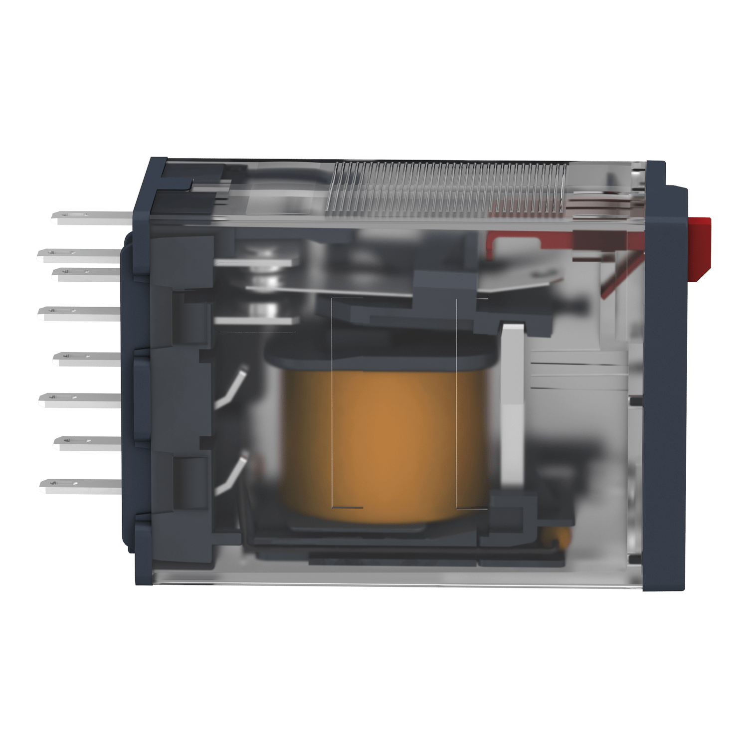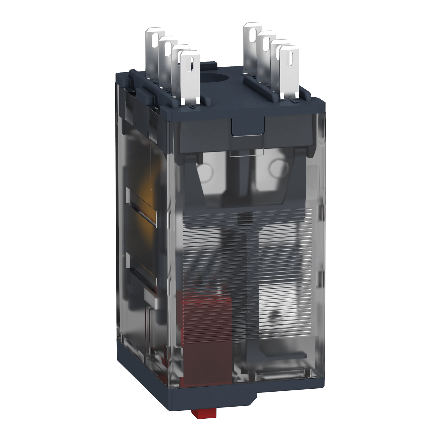 O RXM2AB2B7 é um relé miniatura eletromecânico da linha Harmony RXM.Este é um relé plug-in para ser montado em uma tomada RXZE.Possui 2 contatos normalmente aberto fechado com corrente nominal de 12A, tensão do circuito de controle de 24 V CA.Ele também oferece botão de teste locável em uma etapa e indicador mecânico para status de contato.O botão de teste é ativado momentaneamente pressionando o botão vermelho na frente e travado levantando a parte verde.O indicador mecânico fica próximo ao botão de teste, onde uma bandeira laranja indica o status do contato do relé.Um LED verde na frente acenderá quando o relé estiver ligado.Display de status com LED: sinal claro tanto de dia quanto de noite.Seu design é adequado para máquinas industriais, embalagens, têxteis, HVAC, painéis de controle de automação, quadros de distribuição de baixa/média tensão, controles de motores, interfaces PLC, fontes de alimentação, equipamentos prediais ou médicos, controles de iluminação.É um produto verde premium e está em conformidade com padrões e certificações internacionais como IEC, CE, UL, CSA, EAC, Lloyd's, RoHS e REACH.O relé RXM deve ser usado com um soquete RXZE (braçadeira de parafuso, conector de parafuso, terminal push-in).Para proteger contra vibrações, uma braçadeira de plástico/metal pode ser adicionada ao soquete.