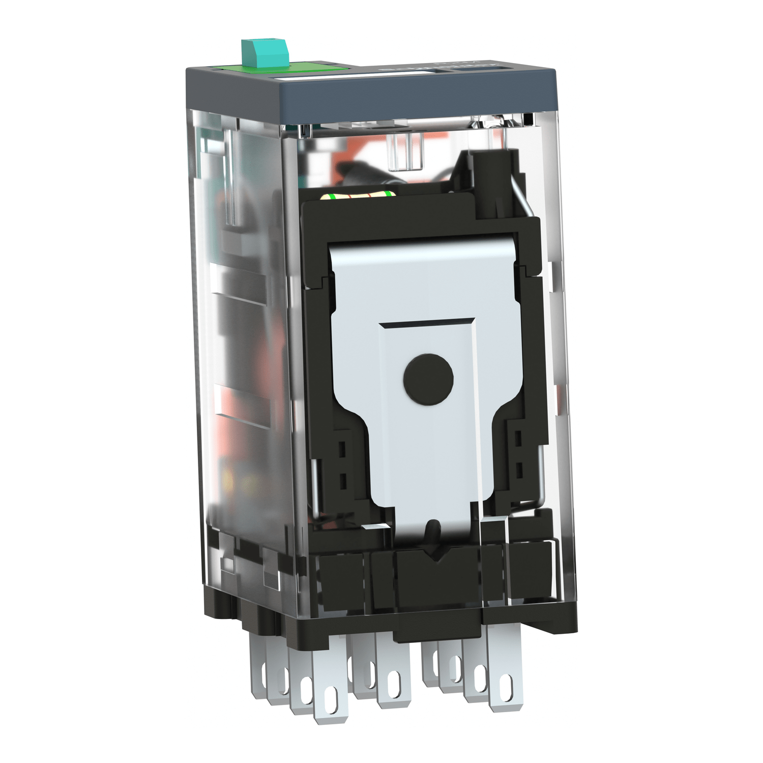 O RXM3AB2BD é um relé miniatura eletromecânico Harmony RXM.Este é um relé plug-in para ser montado em um soquete RXZE.Possui 3 contatos normalmente aberto fechado com corrente nominal de 10A, tensão do circuito de controle de 24 V CC.Ele também oferece botão de teste locável em uma etapa e indicador mecânico para status de contato.O botão de teste é ativado momentaneamente pressionando o botão azul na frente e travado levantando a parte verde.O indicador mecânico fica próximo ao botão de teste, onde uma bandeira laranja indica o status do contato do relé.Funcionalidade para sistemas lógicos automatizados conectados para complementar as funções de controladores lógicos programáveis industriais (CLPs).Seu design é adequado para máquinas industriais, embalagens, têxteis, HVAC, painéis de controle de automação, quadros de distribuição de baixa/média tensão, controles de motores, interfaces PLC, fontes de alimentação, equipamentos prediais ou médicos, controles de iluminação.É um produto verde premium e está em conformidade com padrões e certificações internacionais como IEC, CE, UL, CSA, EAC, Lloyd's, RoHS e REACH.O relé RXM deve ser usado com um soquete RXZE (braçadeira de parafuso, conector de parafuso, terminal push-in).Para proteger contra vibrações, uma braçadeira de plástico/metal pode ser adicionada ao soquete.