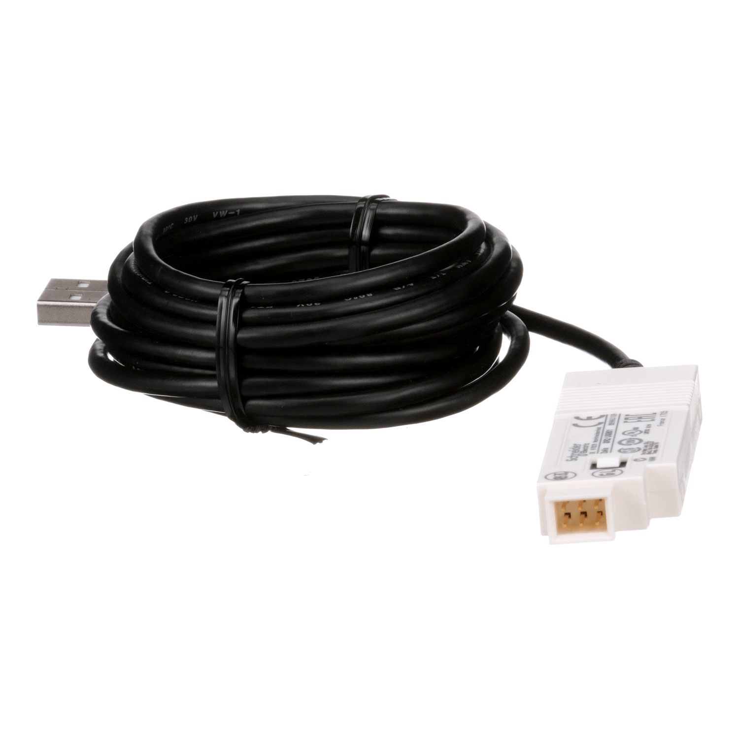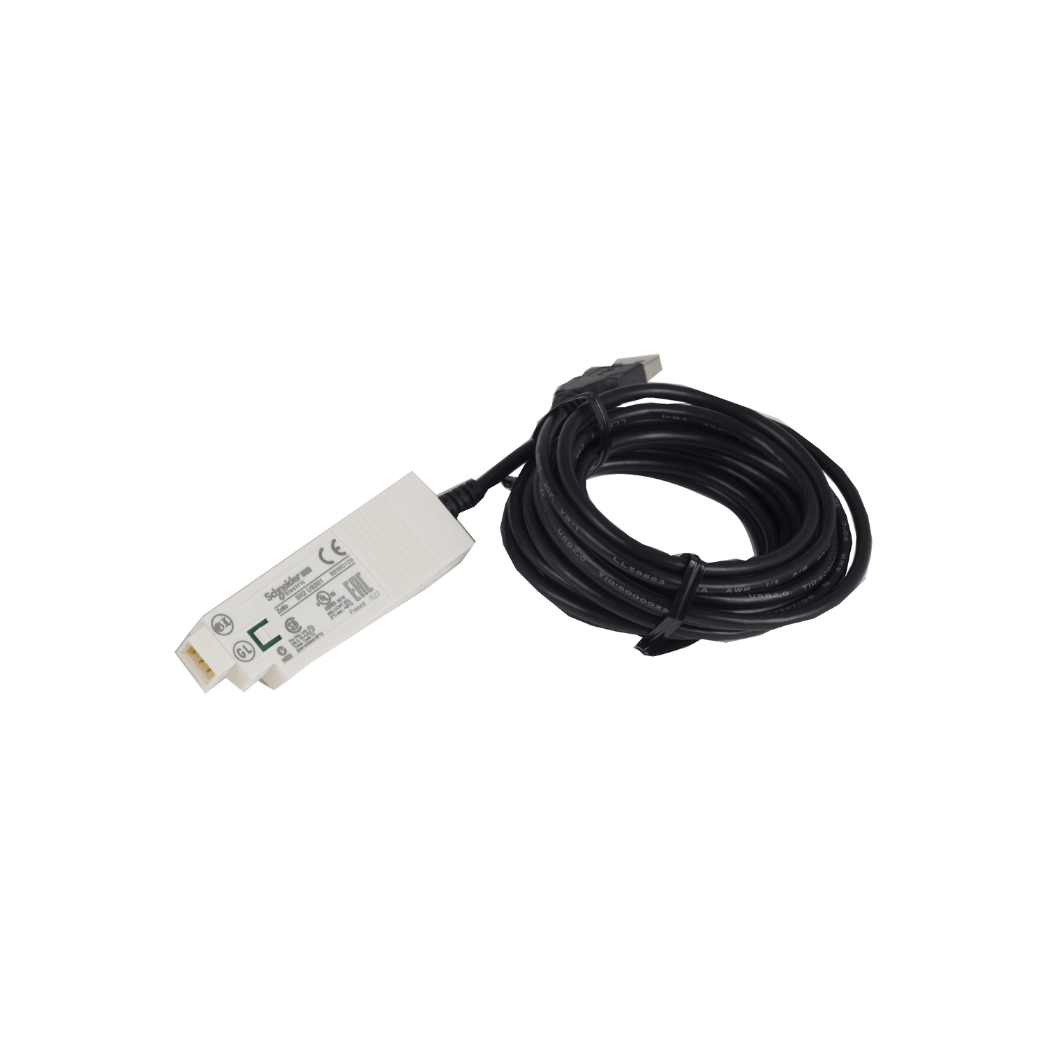 O SR2USB01 é um cabo de comunicação de 3 metros, que permite a conexão entre o computador, com conector USB, e um Relé Programável da Oferta Zelio Logic.